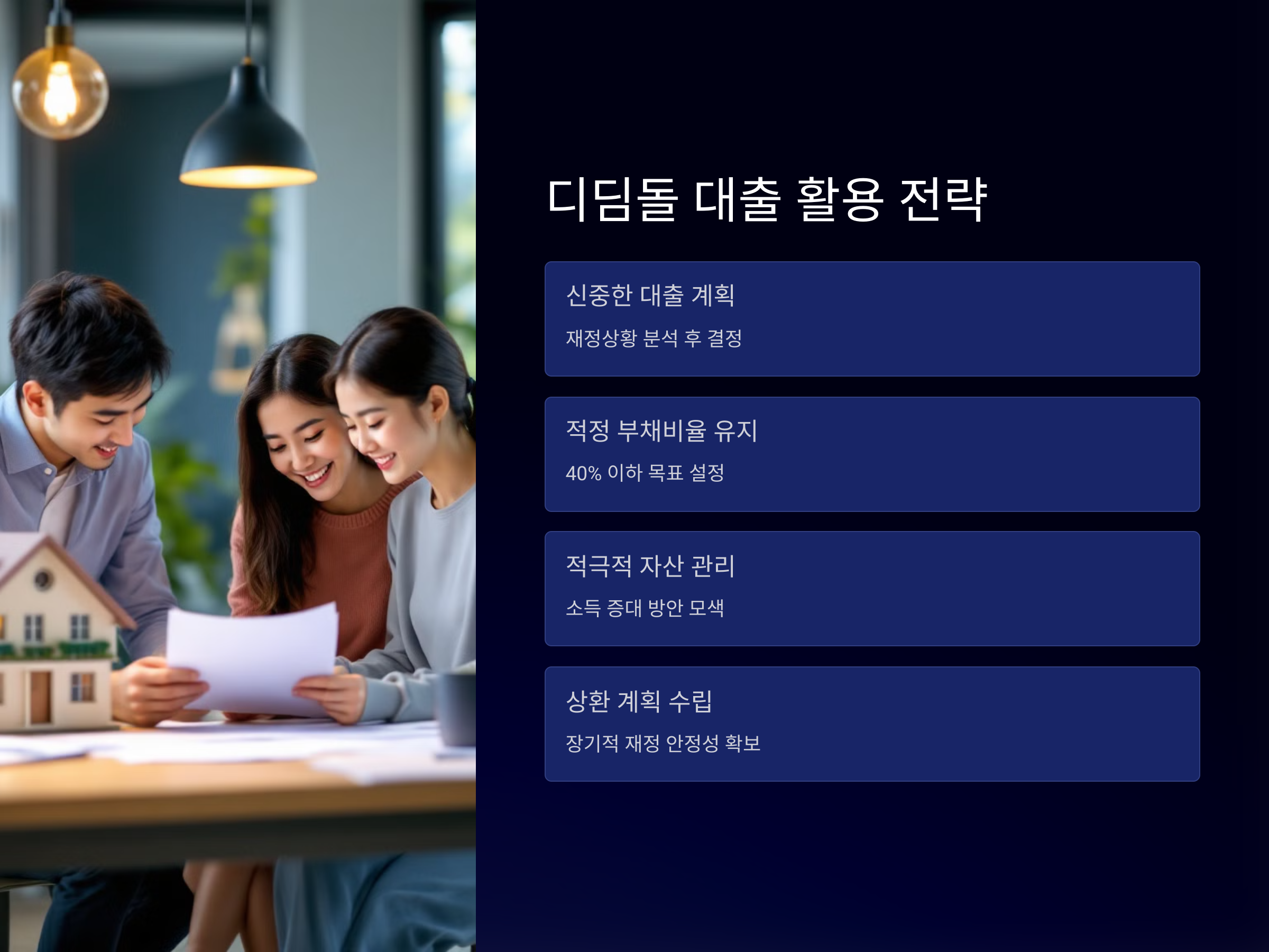 디딤돌 대출을 활용하려면 자신의 재정 상황을 정확히 분석하고, 부채비율을 관리하는 방법을 찾아야 합니다. 이를 통해 안정적인 재정 상황을 유지하면서, 더 나은 미래를 준비할 수 있을 것입니다.