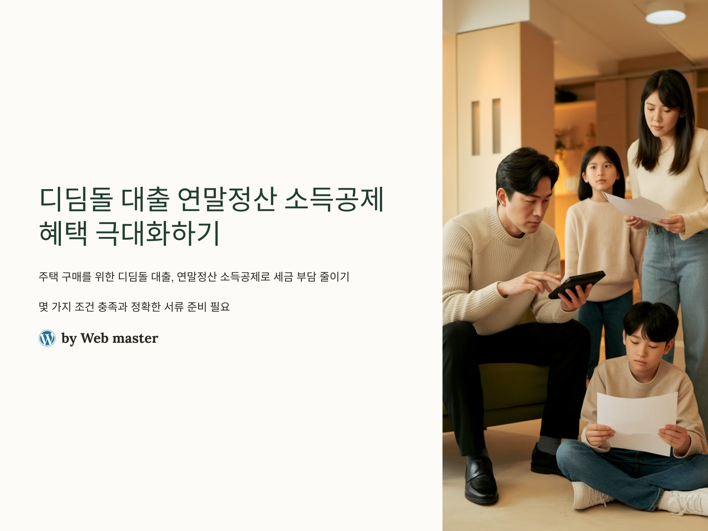디딤돌 대출을 통해 주택을 구입한 경우, 연말정산 시 소득공제를 받을 수 있는 혜택이 있습니다. 이를 위해서는 다음과 같은 요건을 충족해야 합니다: