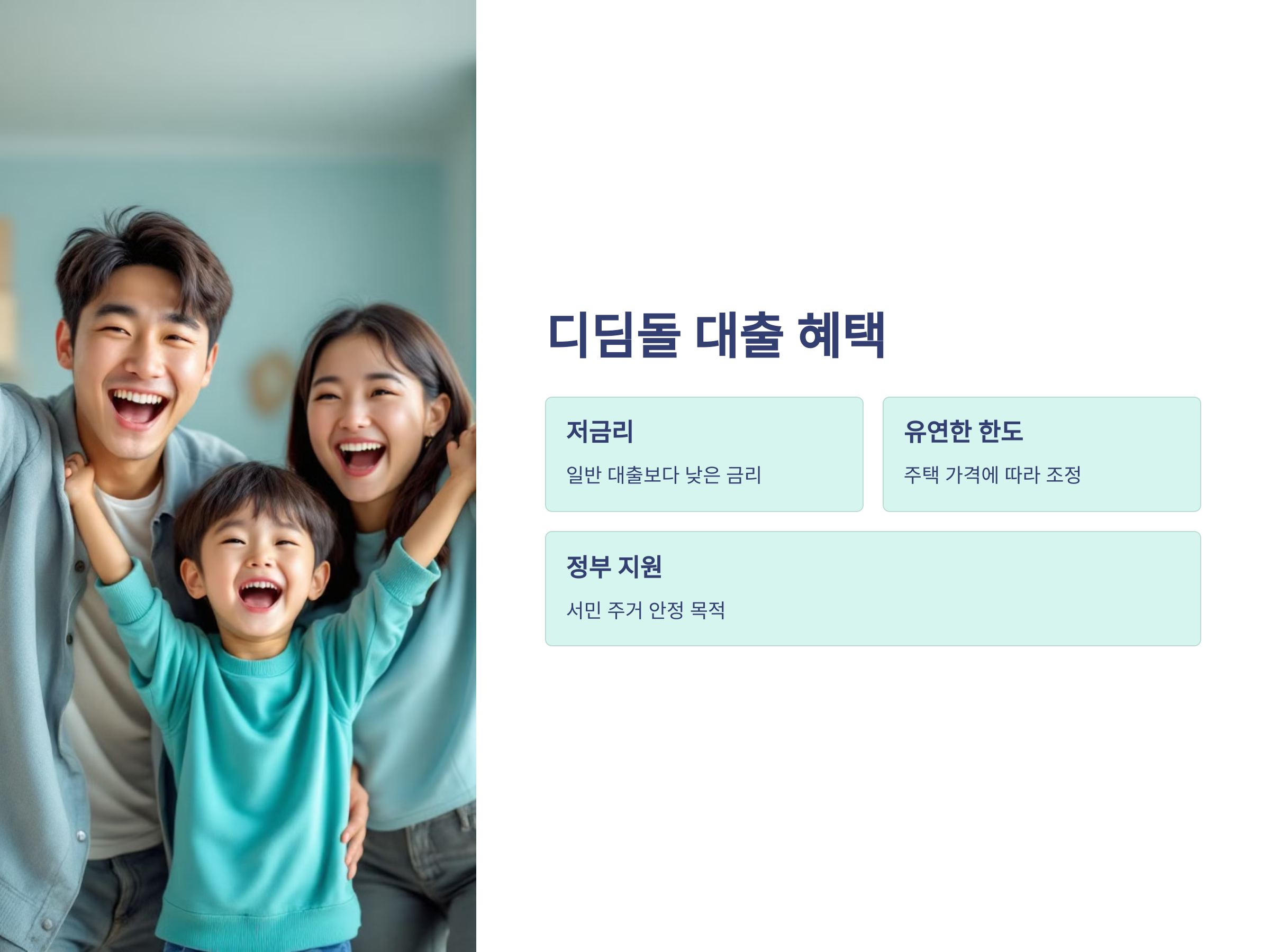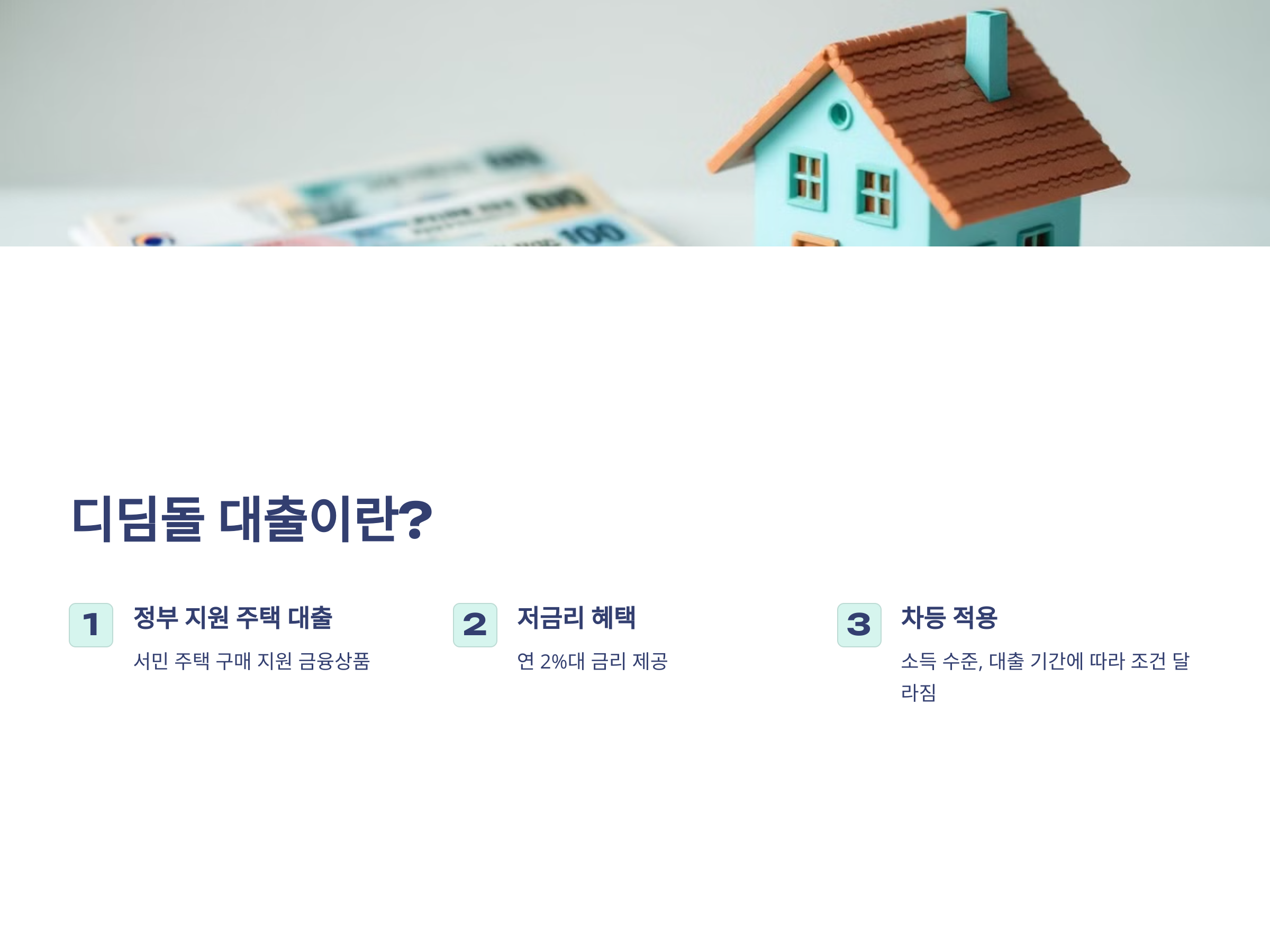 디딤돌 대출은 정부가 서민의 주택 구매를 지원하기 위해 제공하는 대출 상품입니다. 주택을 구매하려는 사람들이 상대적으로 낮은 금리로 대출을 받을 수 있기 때문에, 많은 근로소득자들에게 매력적인 선택지입니다. 주택 구입에 필요한 자금이 부족할 때, 디딤돌 대출은 그 자금을 지원해 주는 중요한 역할을 합니다. 대출 한도나 금리는 소득 수준, 대출 기간 등에 따라 차등 적용되며, 기본적으로 연 2%대의 금리를 제공합니다.