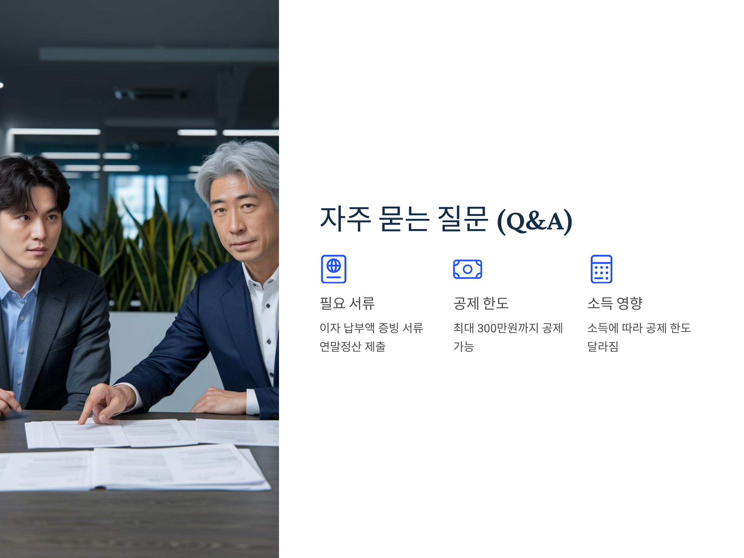 또한, "세금 공제를 받을 수 있는 한도는 얼마인가요?"라는 질문도 자주 받습니다. 디딤돌 대출의 경우, 이자 납부액에 대해 최대 300만원까지 공제를 받을 수 있습니다. 그러나 공제 한도는 대출자의 소득에 따라 달라질 수 있으므로, 정확한 소득 증빙을 통해 공제를 받을 수 있는지 확인하는 것이 필요합니다.
