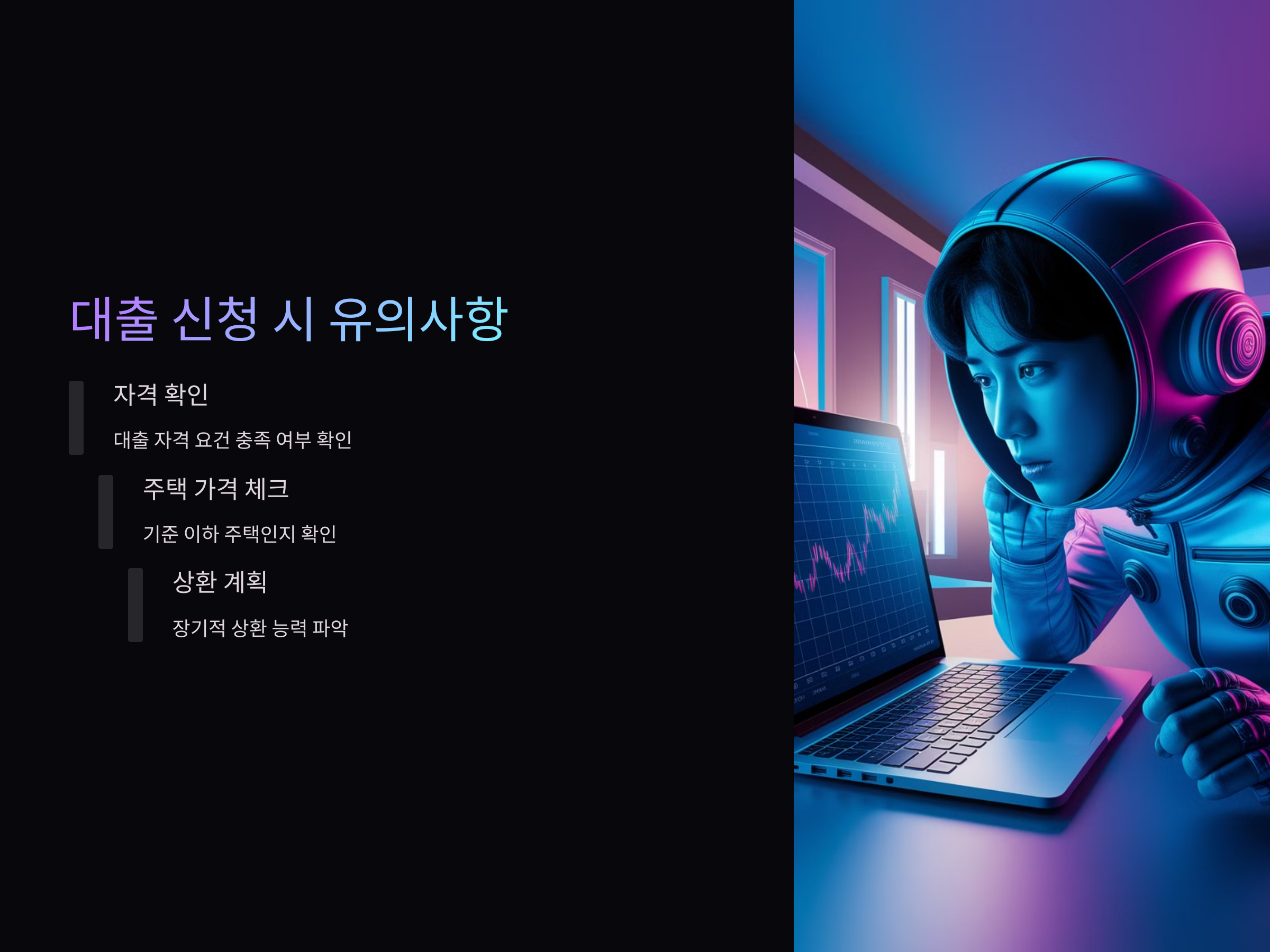 디딤돌 대출을 신청할 때는 몇 가지 중요한 유의사항이 있습니다. 첫째, 대출을 신청할 수 있는 사람의 자격 요건을 충족해야 합니다. 대출 자격에 해당하지 않는 경우에는 대출 신청이 불가능하므로, 대출을 신청하기 전에 자격 요건을 충분히 파악하는 것이 중요합니다.