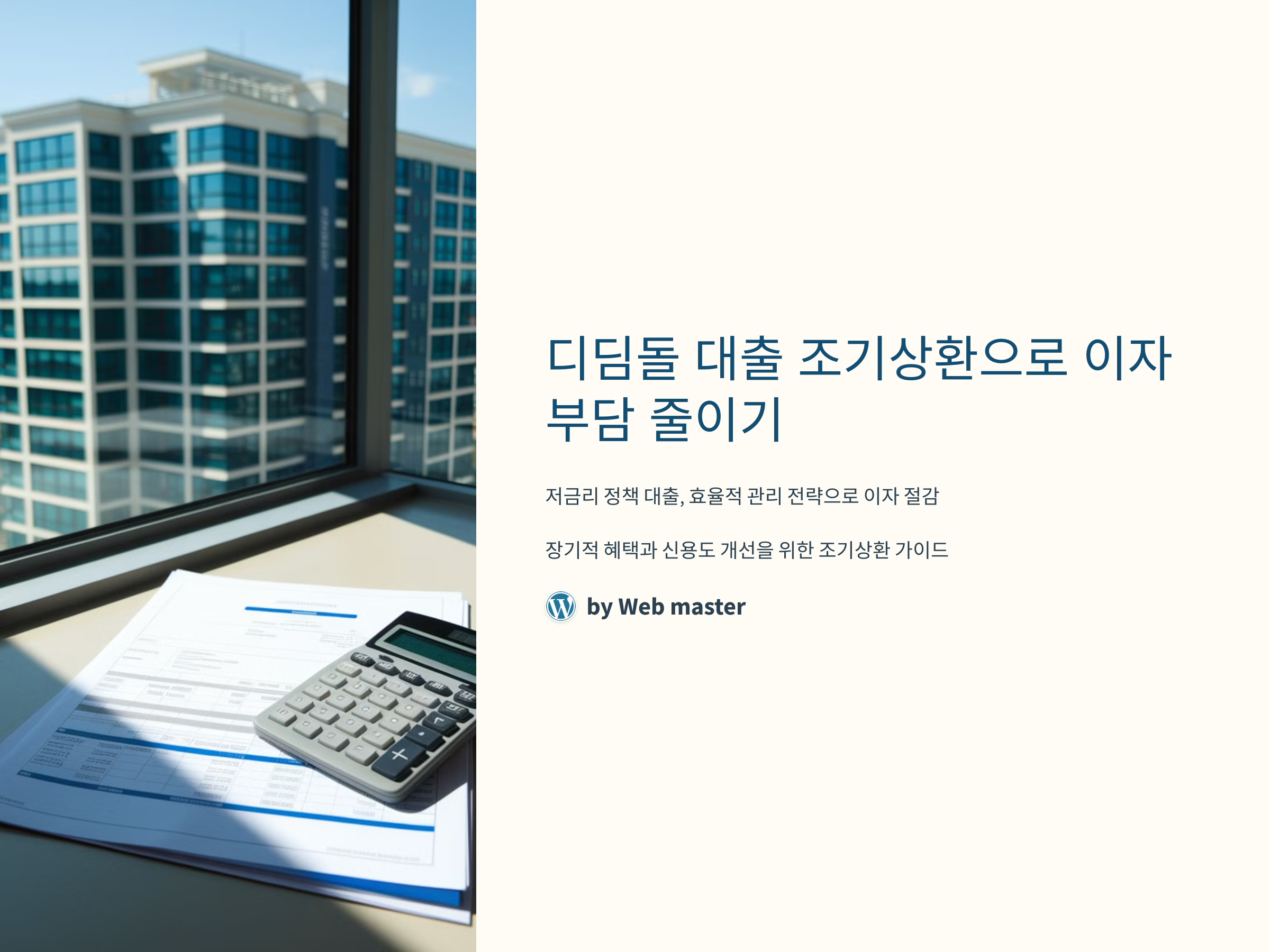 디딤돌 대출은 많은 사람들이 이용하는 정책 대출로, 저금리로 대출을 받을 수 있기 때문에 장기적으로는 매우 유리한 상품입니다. 하지만 상환 기간 동안 계속해서 이자가 발생하므로 조기상환을 고려하는 사람도 많습니다. 디딤돌 대출을 조기 상환할 때 이점과 전략을 제대로 이해하고, 최적의 방법으로 상환 계획을 세우는 것이 중요합니다.