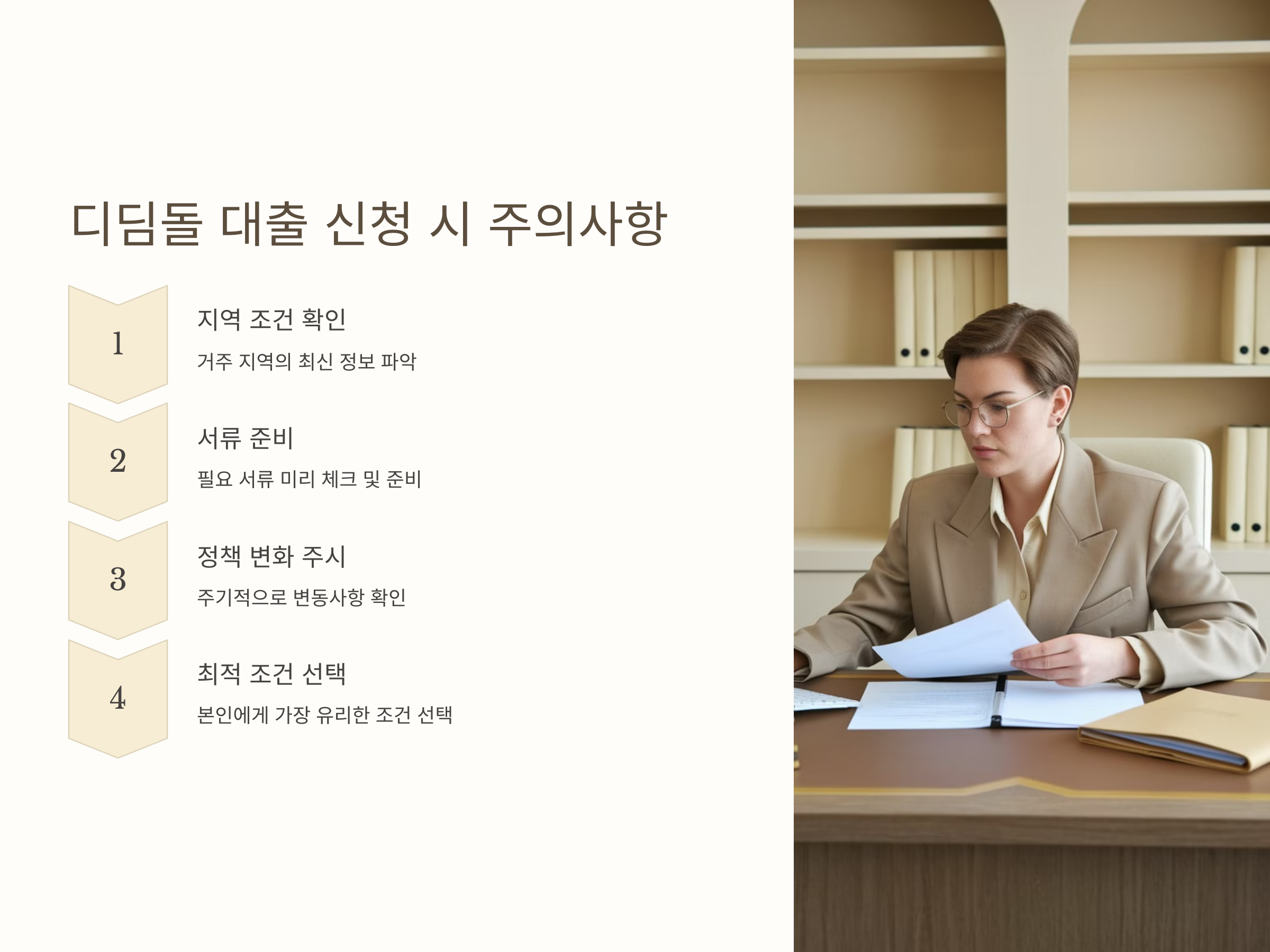 따라서 디딤돌 대출을 신청하려는 분들은 자신이 거주하는 지역의 정책 변화를 꾸준히 체크하는 것이 필요합니다. 예산이나 정부의 정책 변화에 따라 금리, 대출 한도, 지원 조건이 변동될 수 있기 때문에, 이에 대한 정보를 항상 최신 상태로 유지하는 것이 중요합니다.
