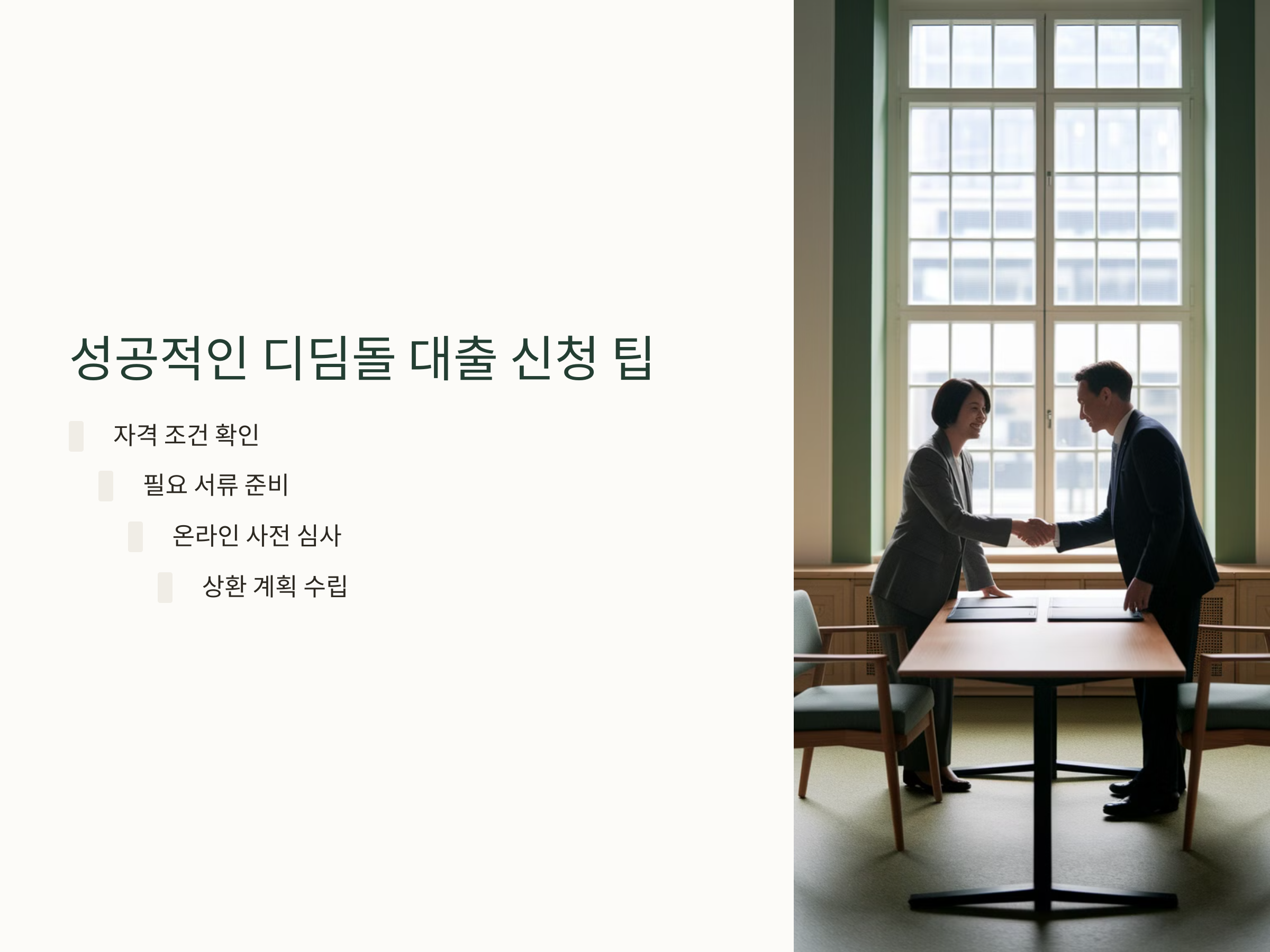 디딤돌 대출은 2025년부터 심사 절차와 조건이 강화되어, 보다 신중한 대출 신청이 필요합니다. 특히, 자산과 소득 기준이 강화된 점을 염두에 두고, 자신에게 맞는 대출 조건을 정확히 파악한 후 신청하는 것이 중요합니다. 저금리 혜택을 놓치지 않으려면, 신청 절차와 필요한 서류들을 미리 준비하고, 대출 조건을 꼼꼼히 확인해야 합니다.