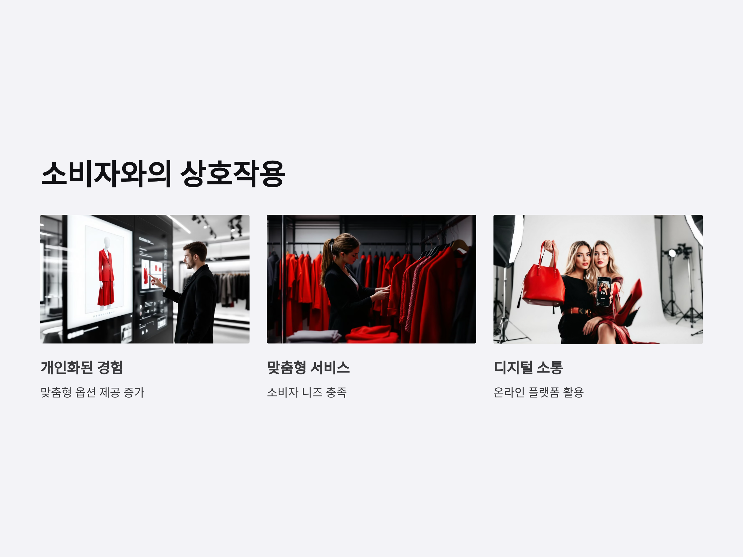 레드패션 마켓의 급성장은 단지 색상의 인기가 아니라, 그 뒤에 있는 소비자들의 변화된 소비 패턴에도 기인하고 있습니다. 소비자들은 이제 단순히 유행을 따르는 것이 아니라, 자신만의 스타일을 고수하며, 감각적이고 독특한 제품을 선호하게 되었습니다. 레드컬러는 이러한 개성을 나타내는 좋은 도구가 되어주고 있습니다.