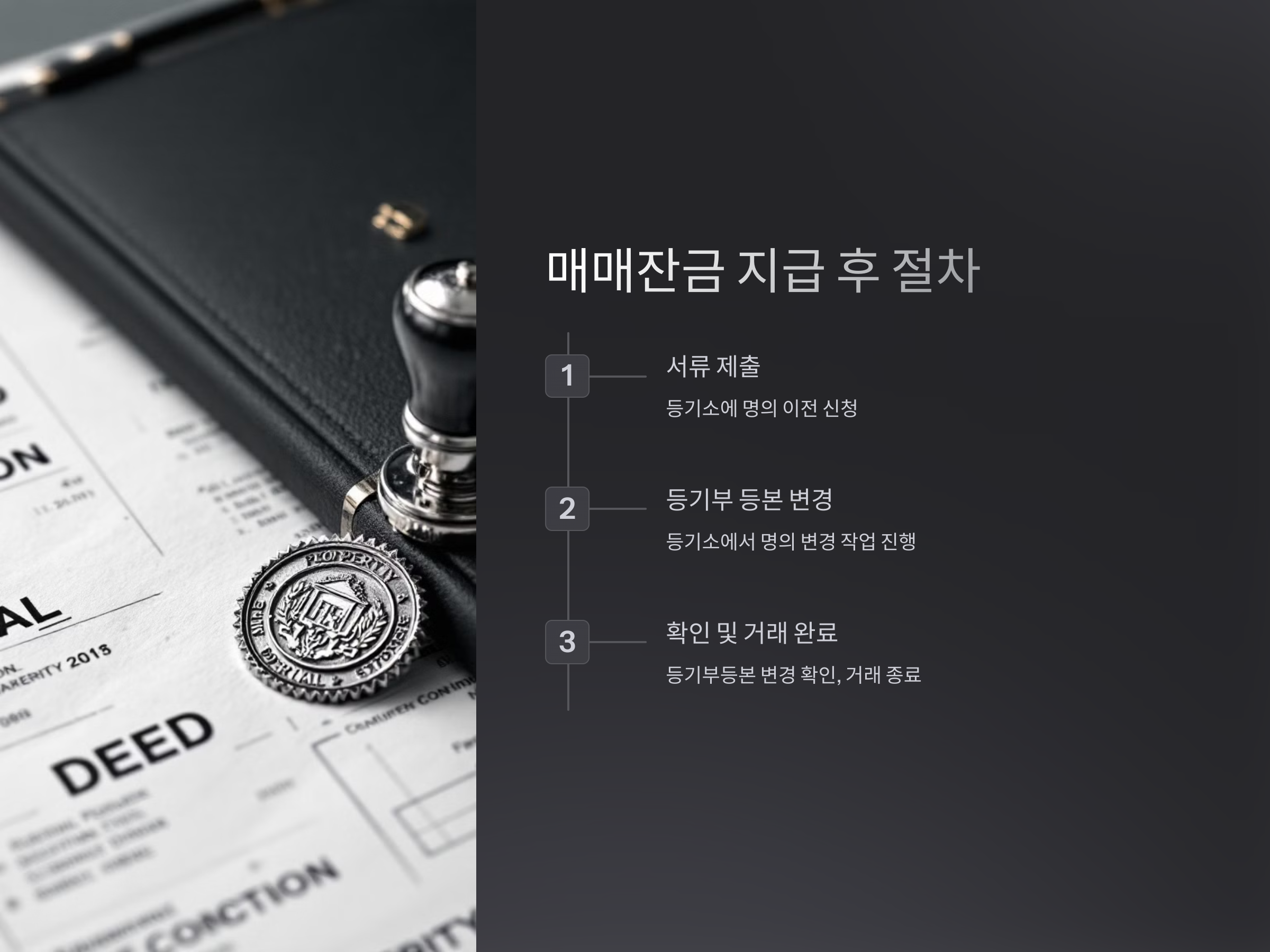 매매잔금 지급 후 명의 변경 절차는 중요한 과정이므로, 모든 서류와 절차를 정확히 이행하는 것이 중요합니다.