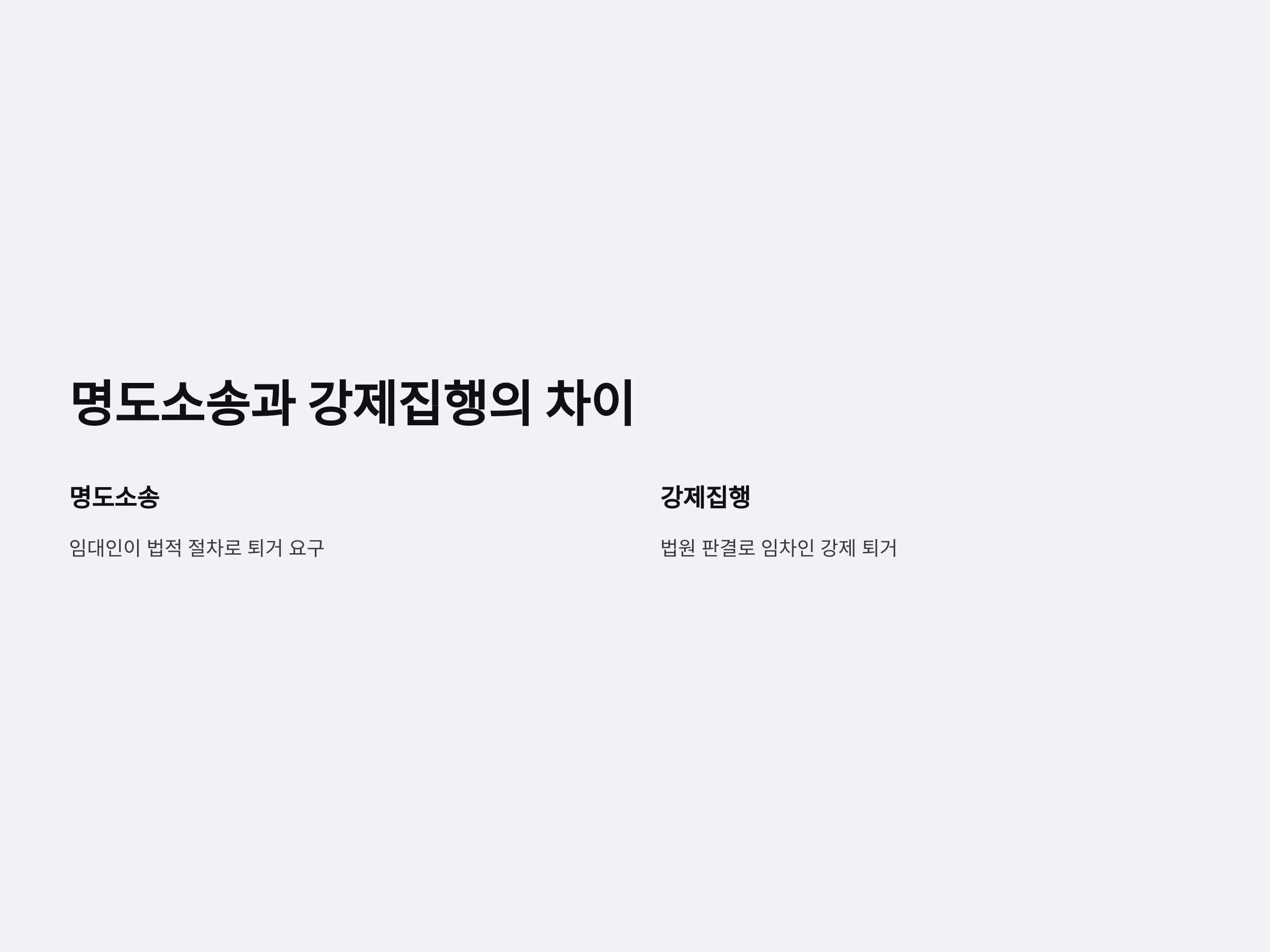 명도소송의 목적은 임차인에게 퇴거를 명령하는 판결을 받는 것입니다. 하지만 명도소송이 끝났다고 하여 모든 일이 끝나는 것은 아닙니다. 종종 임차인은 판결을 무시하고 여전히 거주를 지속할 수 있기 때문에, 이때 강제집행 절차가 필요합니다.
