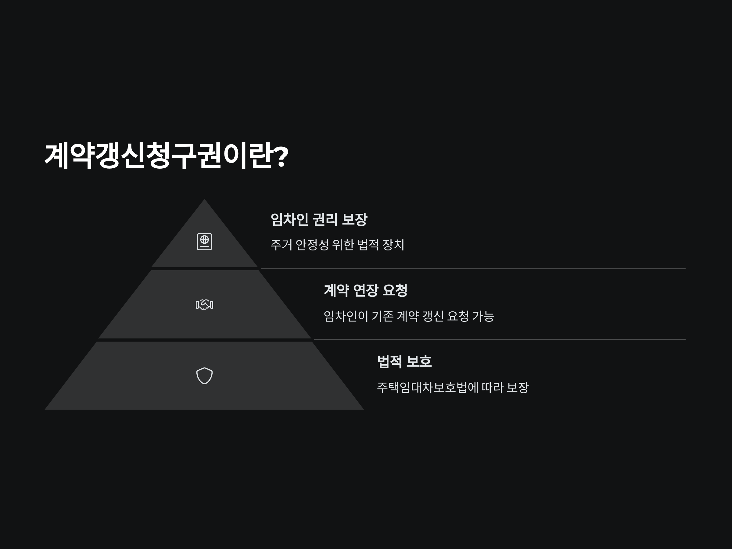 계약갱신청구권은 임차인이 임대차 계약의 만료 후 일정한 조건 하에 기존 계약을 갱신할 수 있는 권리입니다. 주로 주택 임대차에서 많이 적용되며, 상업용 건물에서는 그 적용이 제한될 수 있습니다. 임차인은 계약이 만료되기 전에 계약갱신을 요청할 수 있으며, 임대인은 합리적인 이유가 없는 한 이를 거부할 수 없습니다.