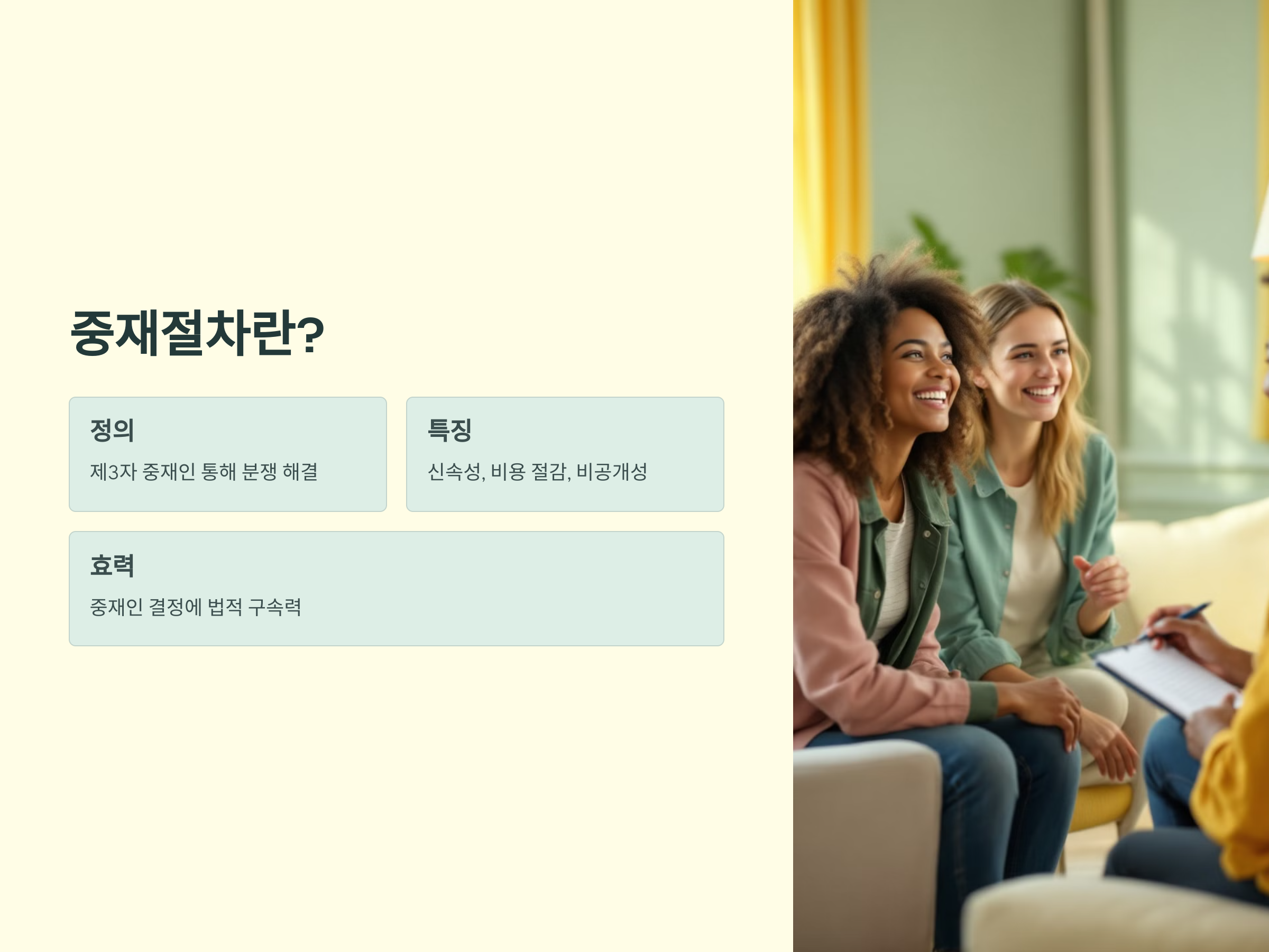 중재절차는 양측의 합의에 의해 진행되며, 중재인의 결정은 법적 구속력을 가집니다.