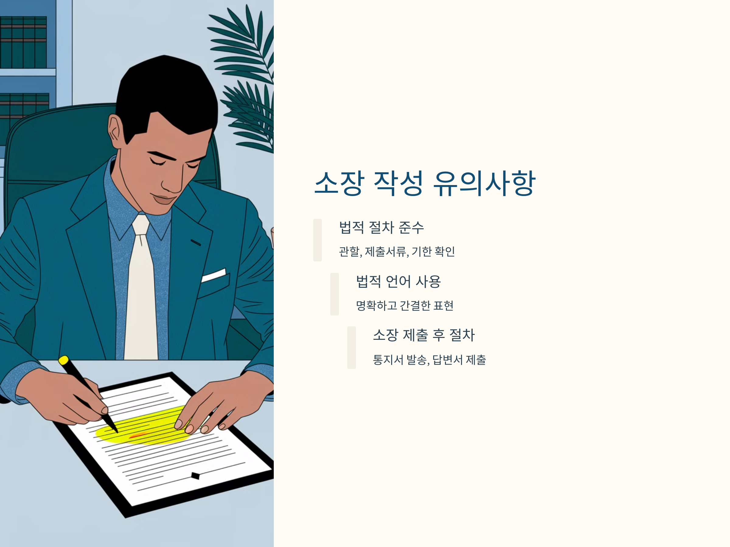소장 작성 후 법원에 제출해야 하므로, 반드시 법적 절차를 준수해야 합니다. 소송을 제기할 법원의 관할, 제출서류, 제출기한 등을 철저히 확인해야 하며, 법원이 요구하는 추가 서류나 자료를 빠짐없이 준비해야 합니다.