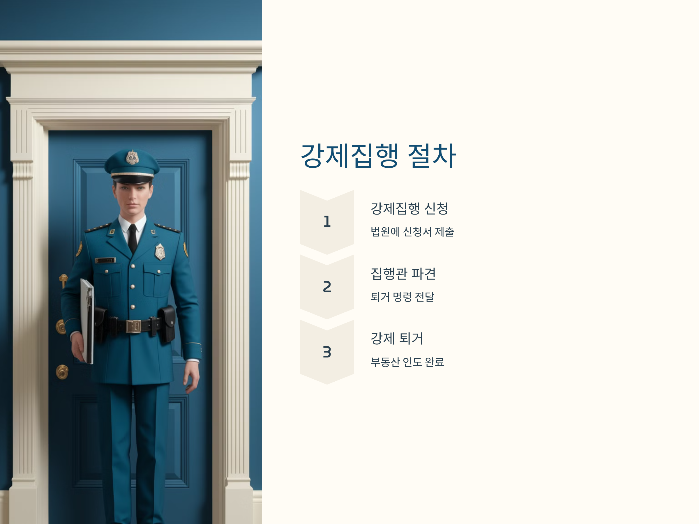집행관은 법원의 명령을 바탕으로 임차인을 퇴거시키고, 해당 부동산을 임대인에게 인도합니다. 강제집행이 완료되면, 임대인은 명도된 부동산을 다시 사용할 수 있게 됩니다.