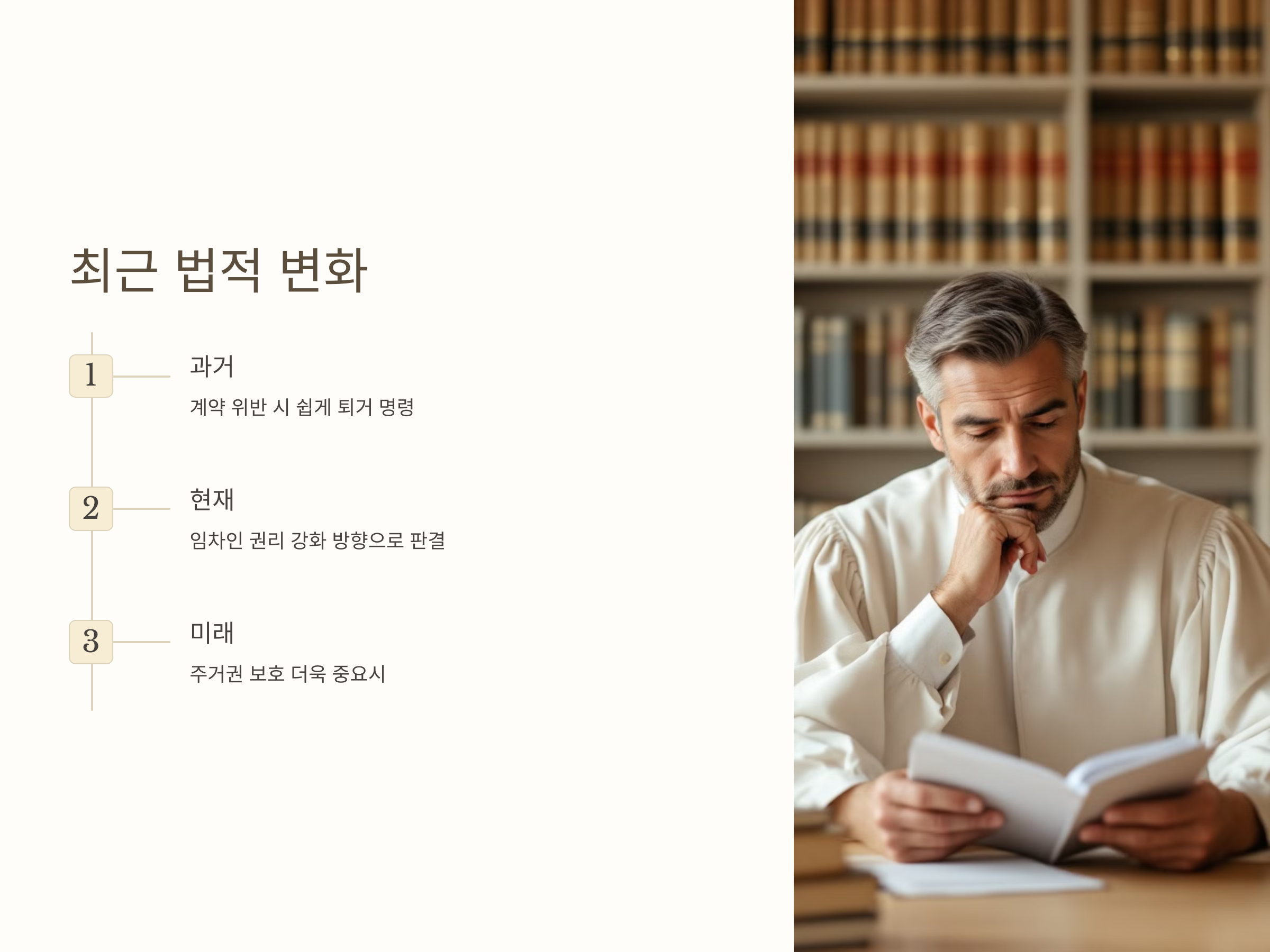 이와 같은 변화는 임차인에게 긍정적인 영향을 미치고 있습니다. 예를 들어, 임차인이 계약을 위반한 경우에도 퇴거 절차가 길어질 수 있고, 주거지가 급하게 퇴거를 요구받을 경우 생계에 큰 영향을 미칠 수 있기 때문에 법원은 임차인의 권리를 존중하고 있습니다.