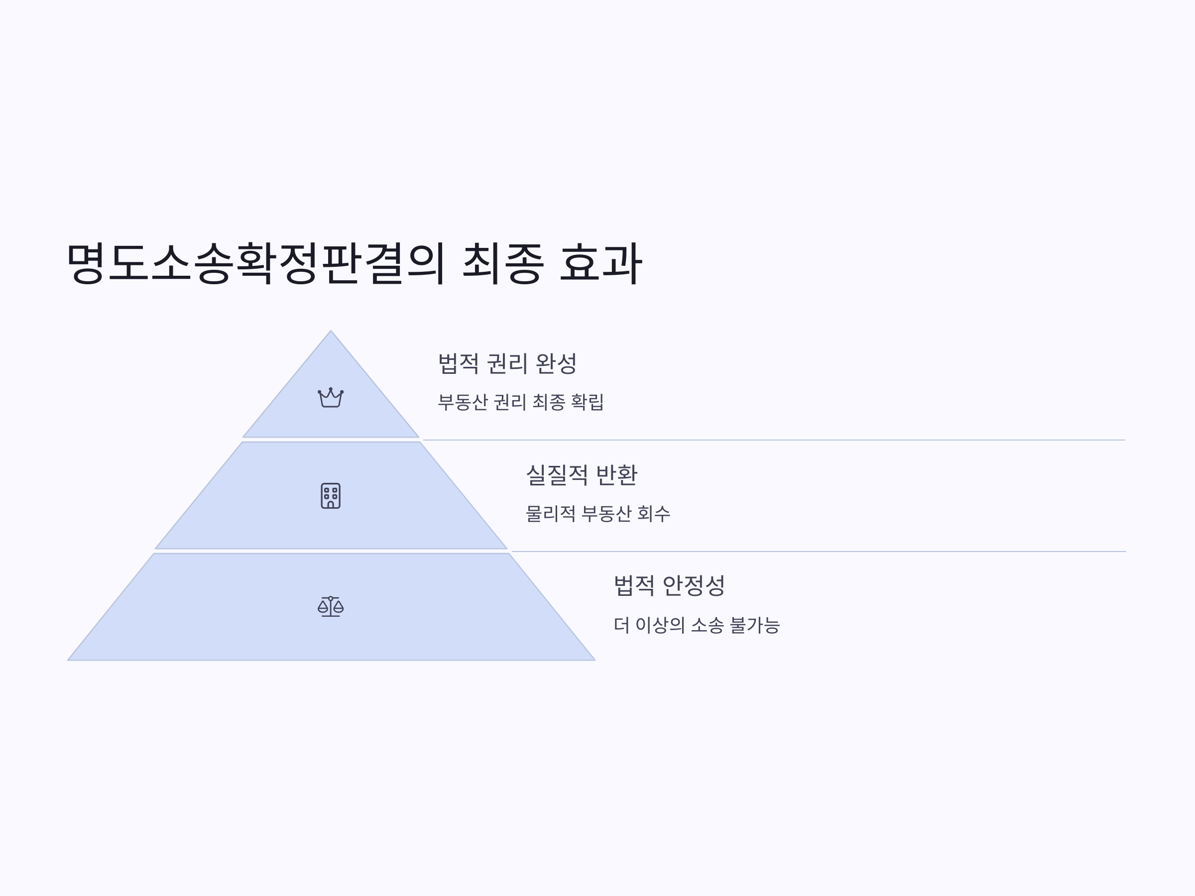 명도소송확정판결이 확정되면 그 의미는 단순히 부동산을 반환받는 것을 넘어, 해당 부동산의 소유권 문제에 대한 법적 결론을 내리는 것입니다. 이는 부동산 소유자나 임대인에게 중요한 법적 권리를 인정받는 결과로, 해당 부동산에 대한 모든 권리가 확립됩니다.