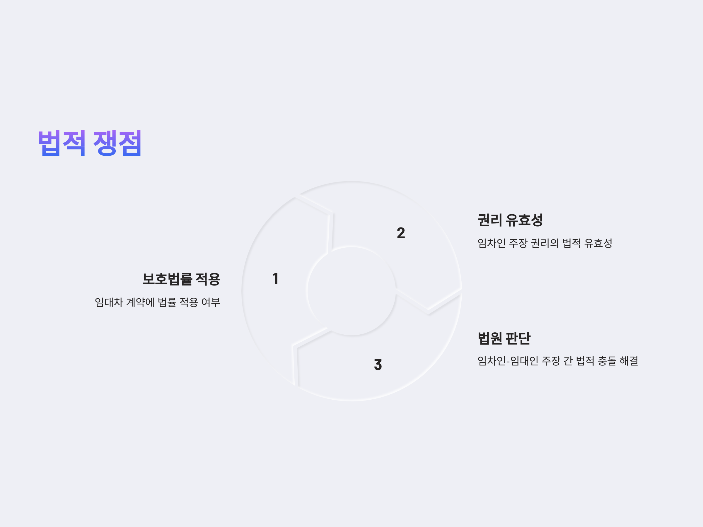 명도소송에서 대항력에 대한 법적 쟁점은 다양합니다. 대항력을 인정받기 위한 조건은 각 사건의 상황에 따라 달라지며, 법원이 판단하는 여러 요소가 중요한 역할을 합니다. 대항력의 주된 법적 쟁점은 임차인이 주장하는 보호 법률이 임대차 계약에 어떻게 적용되는지, 그리고 임차인이 보유한 법적 권리가 유효한지 여부입니다.