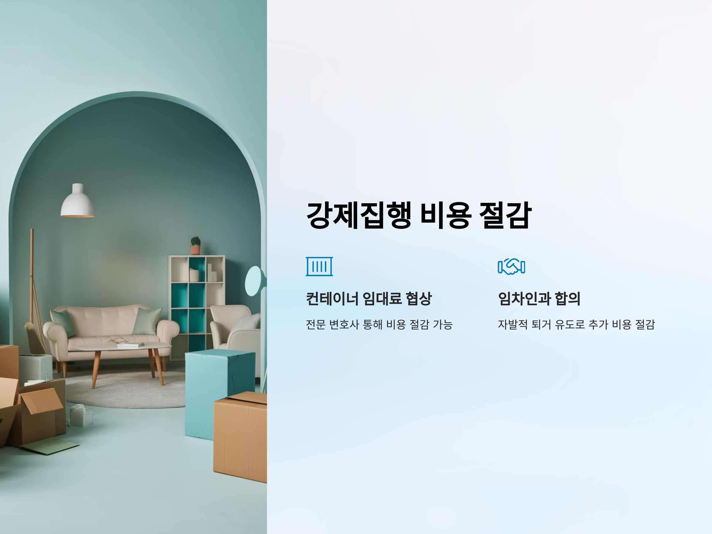 - 컨테이너 임대료 협상: 집행한 물품을 보관하기 위한 컨테이너 임대료는 월 약 40만 원 정도입니다. 명도소송 전문 변호사는 관련 업체와의 협력을 통해 비용을 절감할 수 있으므로, 변호사를 통해 진행하는 것이 유리할 수 있습니다.