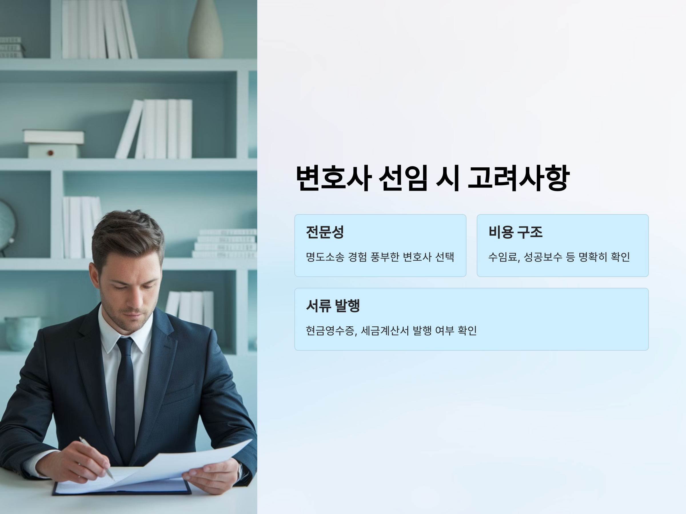 - 전문성 확인: 명도소송 경험이 풍부한 변호사를 선택하여 소송의 효율성과 승소 가능성을 높일 수 있습니다.