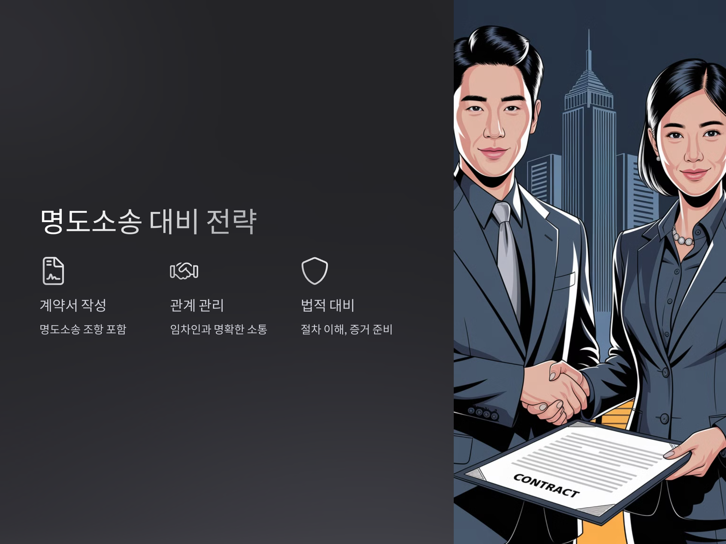 명도소송은 상가 계약에서 발생할 수 있는 중요한 법적 절차이지만, 이를 미리 준비하고 대응하는 방법을 알면 두려울 것이 없습니다. 계약서에 명도소송에 대한 조항을 포함시키고, 임차인과의 관계를 명확히 하는 것만으로도 많은 분쟁을 예방할 수 있습니다. 또한, 명도소송을 진행할 때는 법적 절차를 정확히 이해하고 준비하는 것이 중요합니다.