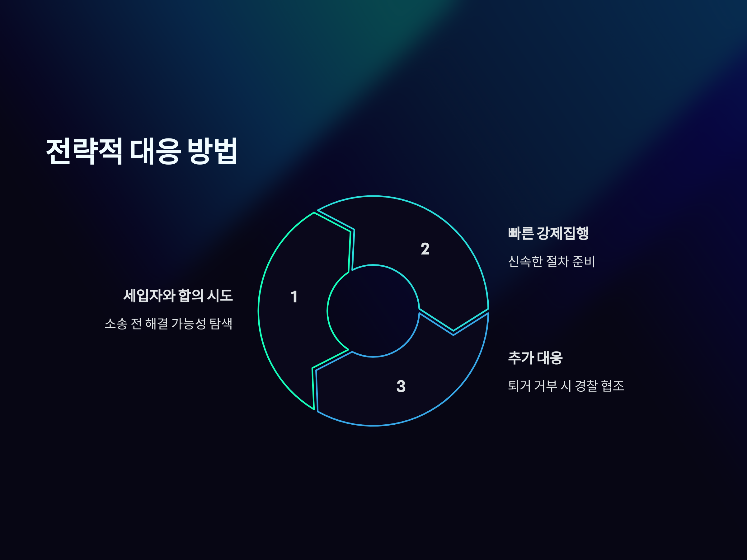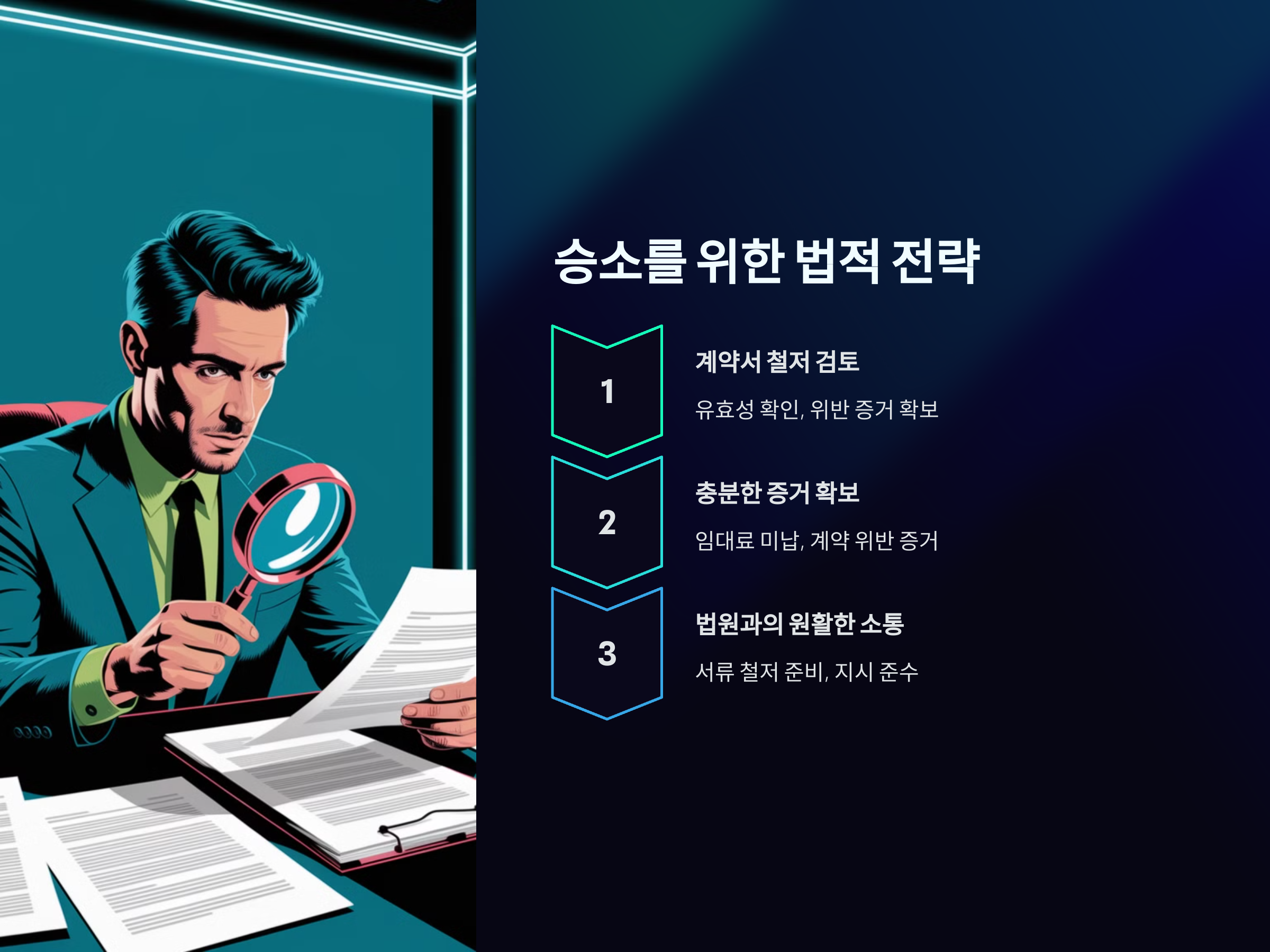 명도소송에서 승소하려면 단순한 법적 절차를 넘어서 전략적으로 접근해야 합니다. 세입자와의 협상, 증거 수집, 법적 대응 등 모든 단계를 꼼꼼하게 준비하는 것이 중요합니다. 성공적인 소송을 위해서는 철저한 준비가 필수적입니다.