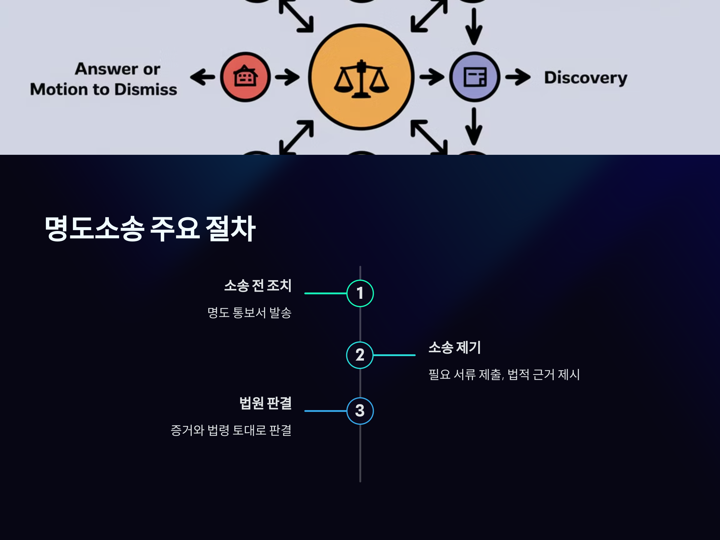 명도소송은 민사소송으로 진행되며, 법원의 판결을 받기까지 시간이 걸릴 수 있습니다. 이때 법원에 제출하는 서류나 증거가 철저하게 준비되어야 하며, 법원의 지시를 정확히 따르는 것이 중요합니다.