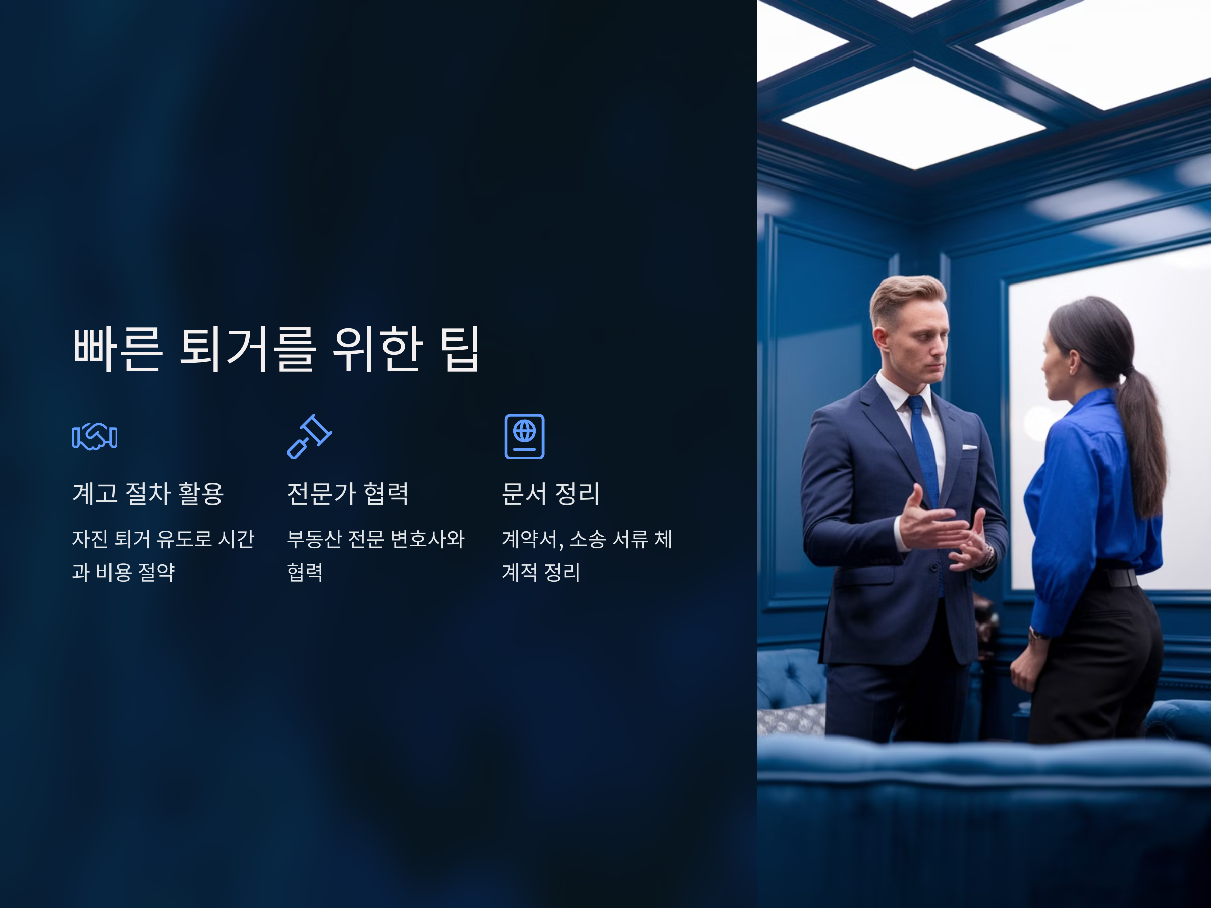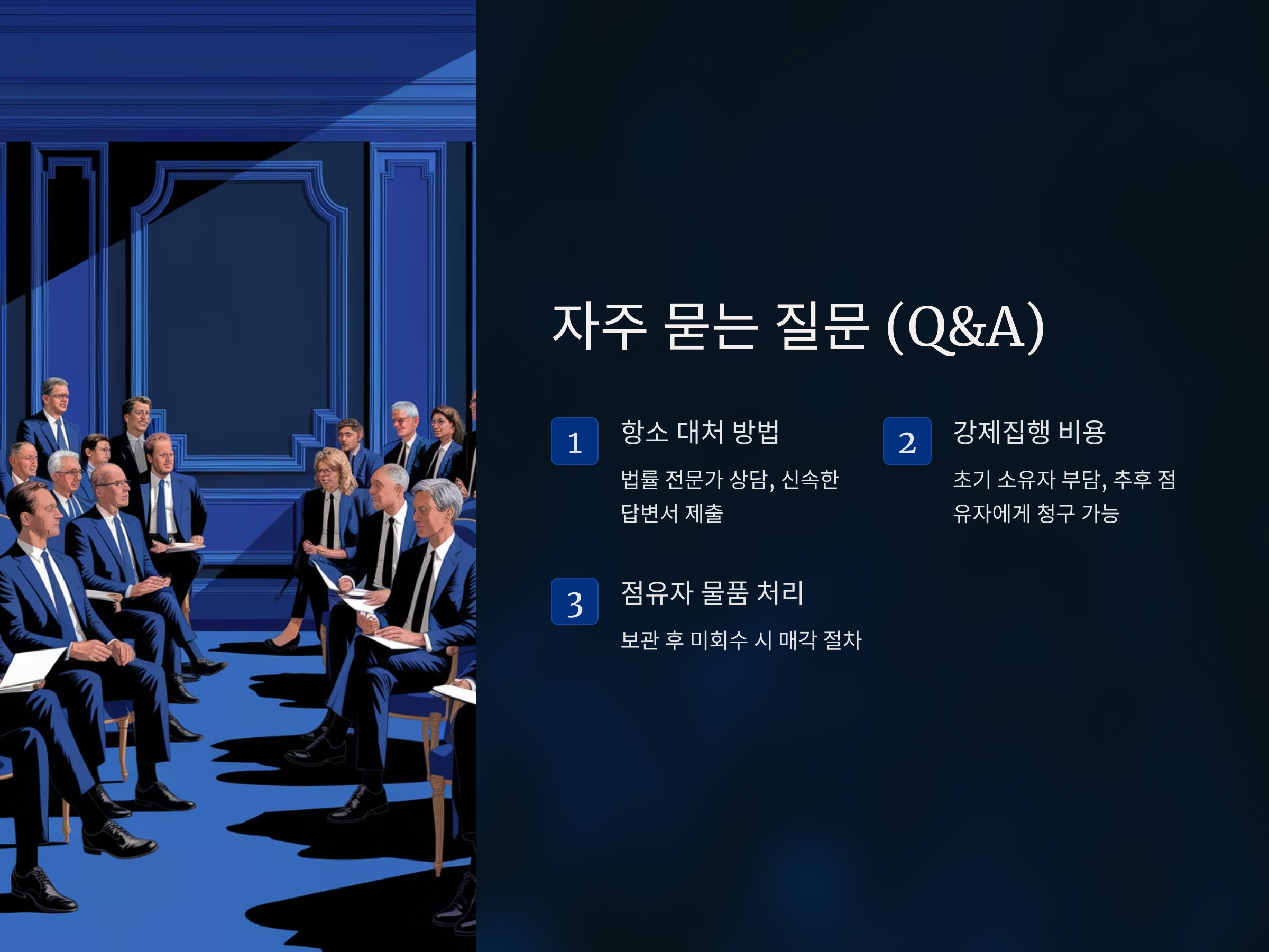 - 계고 절차 활용: 계고 단계에서 점유자를 설득하여 자진 퇴거를 유도하면, 시간과 비용을 절약할 수 있습니다.