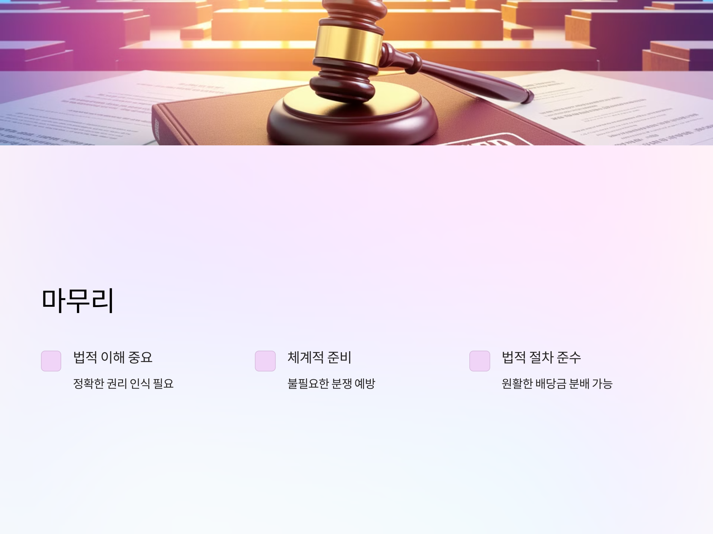 - 문서화된 증거 확보: 배당금에 대한 권리와 관련된 증거를 문서화하여 분쟁이 발생했을 때 법적 근거로 사용할 수 있습니다.