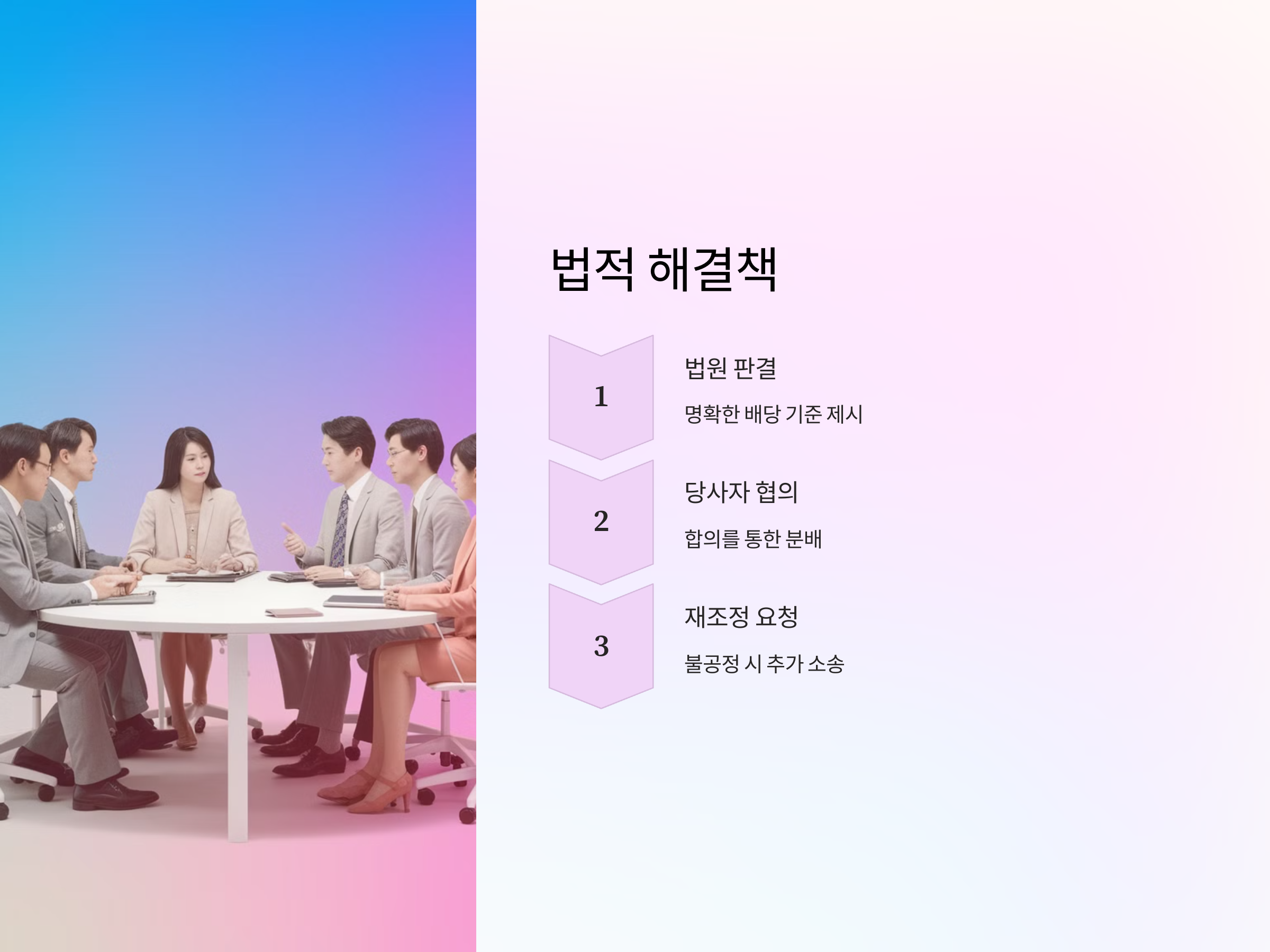 - 협의와 중재 활용: 배당문제를 해결할 때, 소송 외에도 협의와 중재를 통해 문제를 원만하게 해결할 수 있습니다.