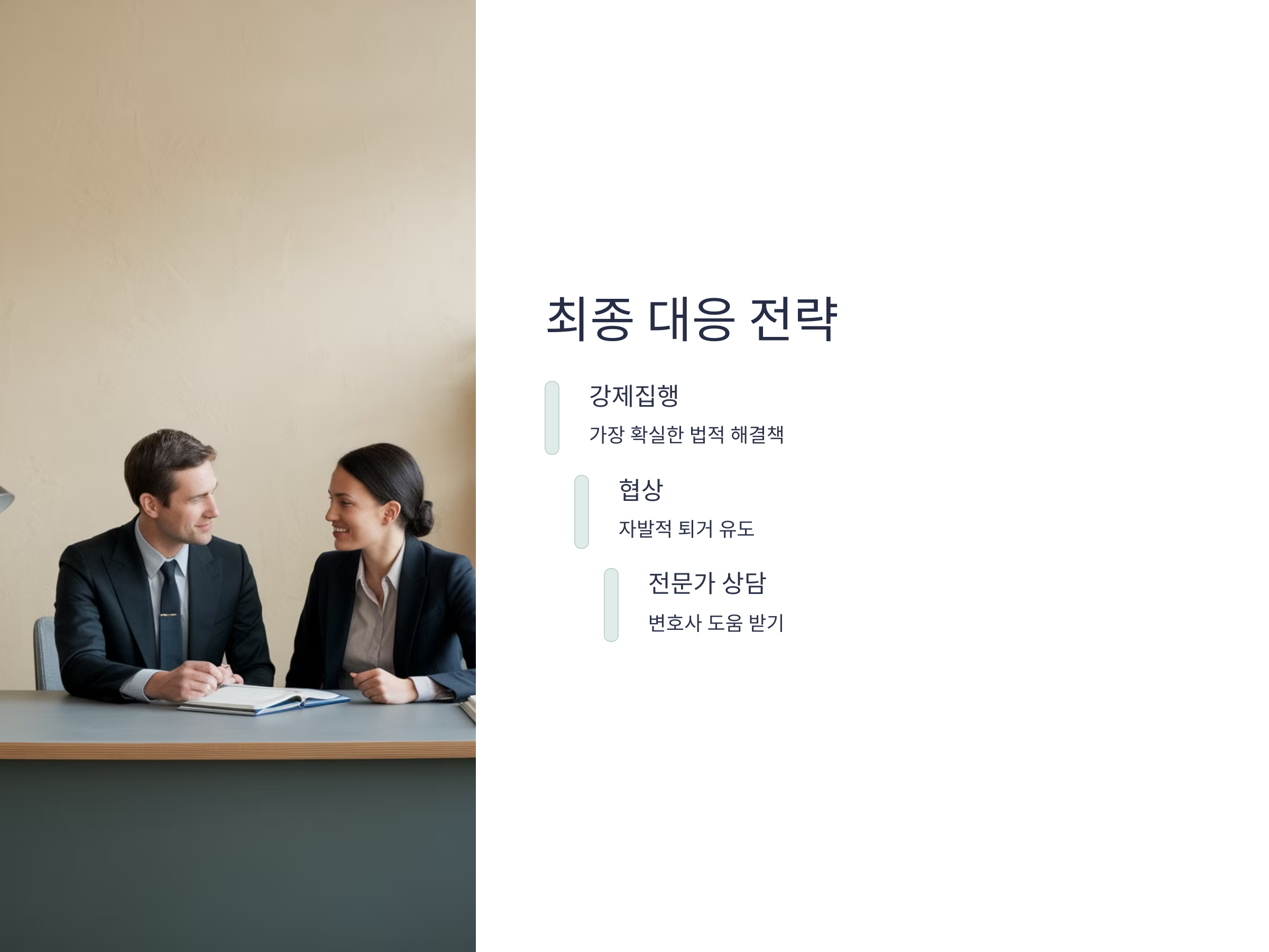 임차인이 퇴거를 거부할 경우, 법적인 권리를 적절히 행사하여 임차인이 자발적으로 퇴거할 수 있도록 유도하는 것이 중요합니다. 이를 위해서는 신속하고 정확한 대응이 필요합니다. 임차인의 거부 상황에서 고민이 많다면, 전문 변호사의 도움을 받는 것이 가장 효과적인 방법일 수 있습니다.