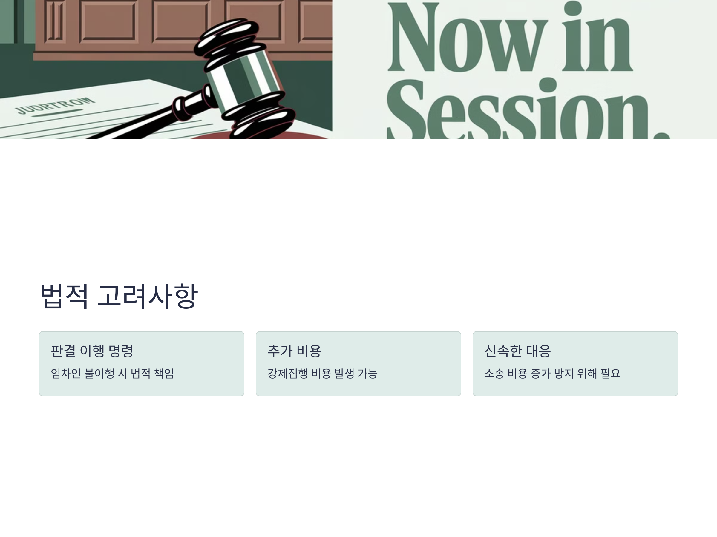 - 따라서, 임차인의 퇴거 거부가 길어지면, 소송 비용이 증가할 수 있으므로 상황에 맞는 신속한 대응이 중요합니다.