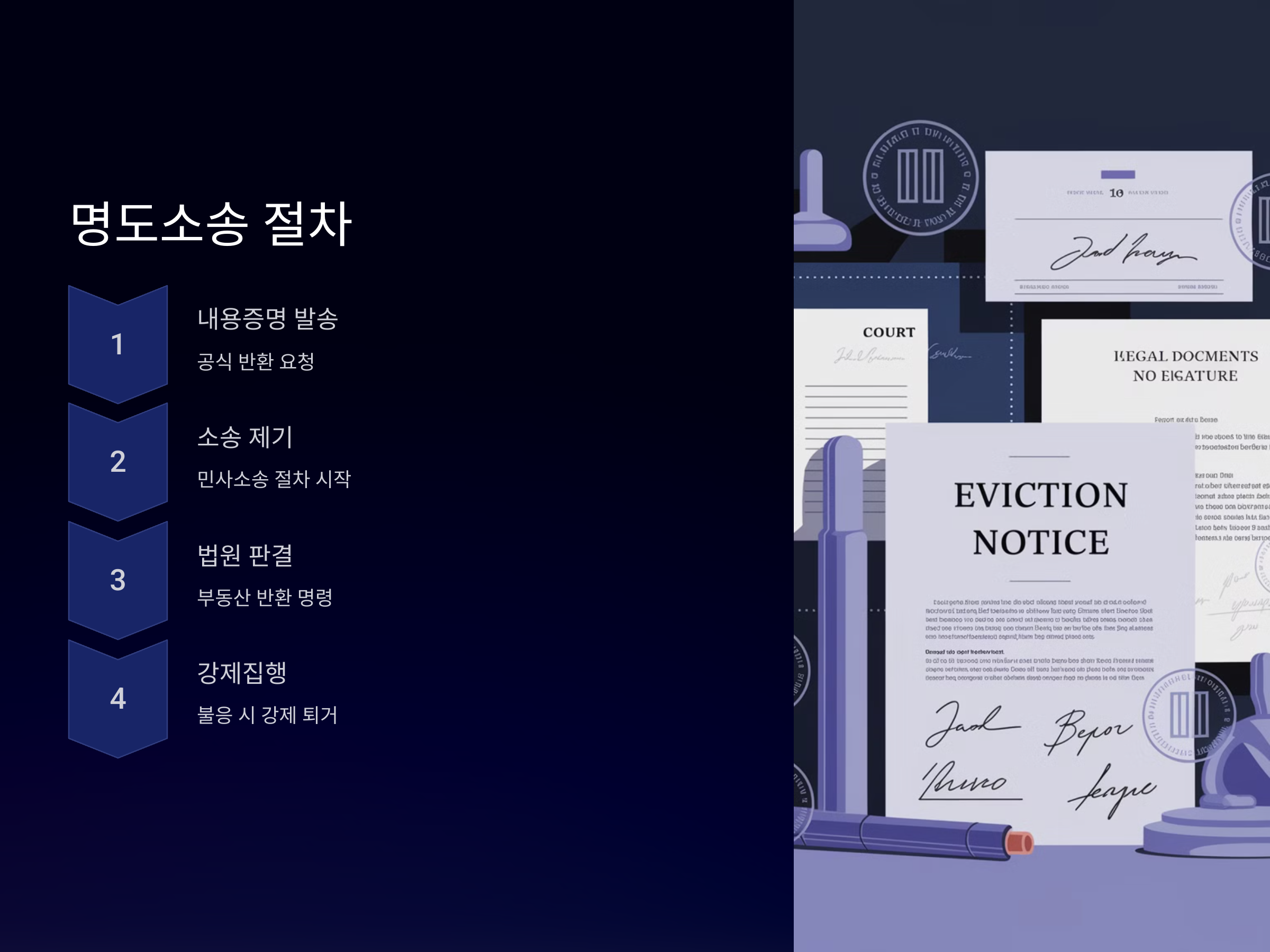명도소송을 진행하는 과정에서 중요한 점은 법적 요구사항을 충족시키는 것입니다. 이를 위해서는 계약서, 통지서, 내용증명 등 모든 서류를 꼼꼼히 준비하고, 법적 절차를 정확히 따르는 것이 필요합니다.