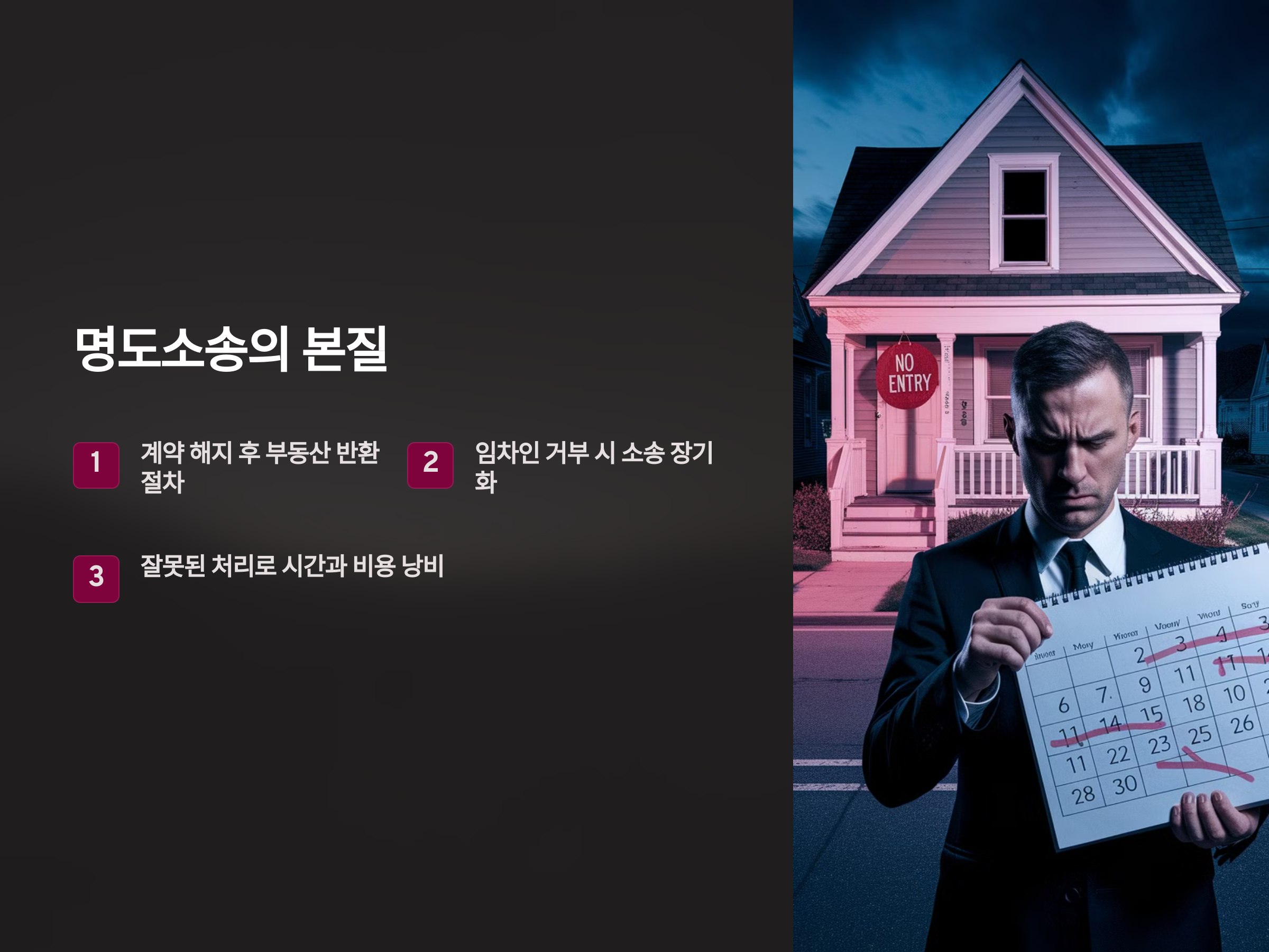 명도소송의 본질은 계약 해지 후 임차인이 더 이상 부동산을 점유하지 않도록 법적으로 강제하는 것이며, 임차인이 이를 거부할 경우 소송이 길어지고, 법적 절차를 잘못 처리하면 시간과 비용만 낭비할 수 있습니다. 그렇다면 임차인이 거부하는 상황에서 임대인은 어떤 법적 대응을 해야 할까요?