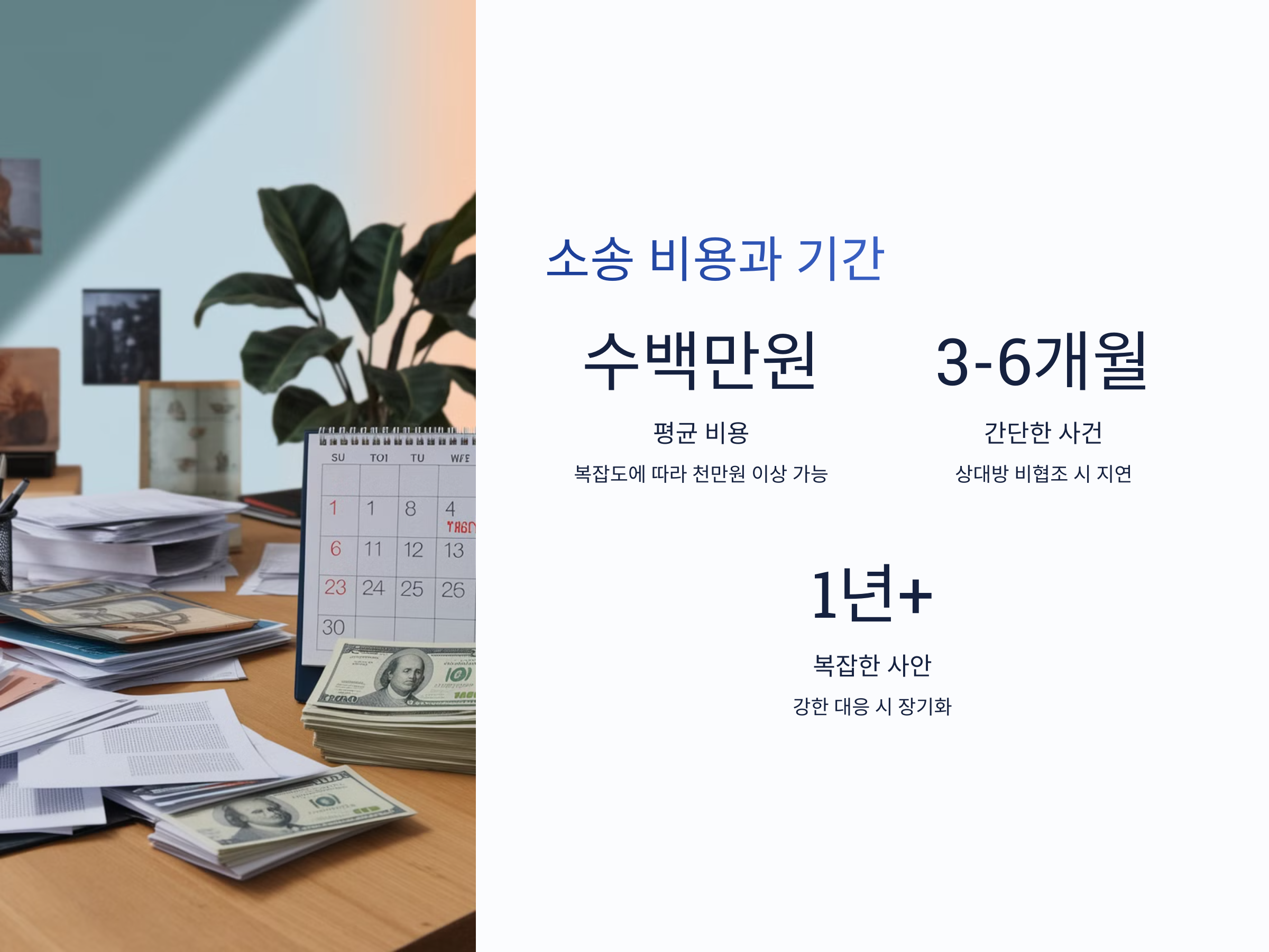 명도소송의 비용은 소송의 복잡도, 변호사의 수임료, 사건의 규모에 따라 달라지며, 평균적으로 수백만원에서 천만원 이상이 들 수 있습니다. 기간 역시 간단한 사건은 3~6개월 내에 종료되지만, 상대방이 강하게 대응하거나 복잡한 사안일 경우 1년 이상 걸릴 수 있습니다. 따라서 변호사와 사전에 충분히 상담하여 예상 비용과 기간을 명확히 알아두는 것이 중요합니다. 최근에는 소송비용을 절감할 수 있는 법률구조공단 지원을 활용하는 사례도 늘고 있으니 참고하면 좋습니다.