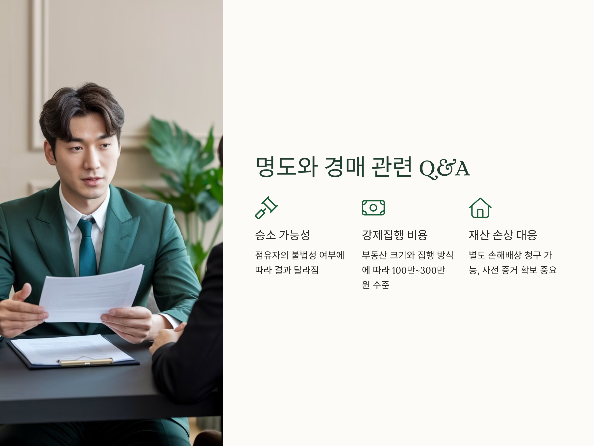일부 점유자는 퇴거 조건으로 부당한 금액을 요구하기도 합니다. 명도소송을 진행하면 이러한 요구를 거부하고 정당한 절차를 따를 수 있습니다.