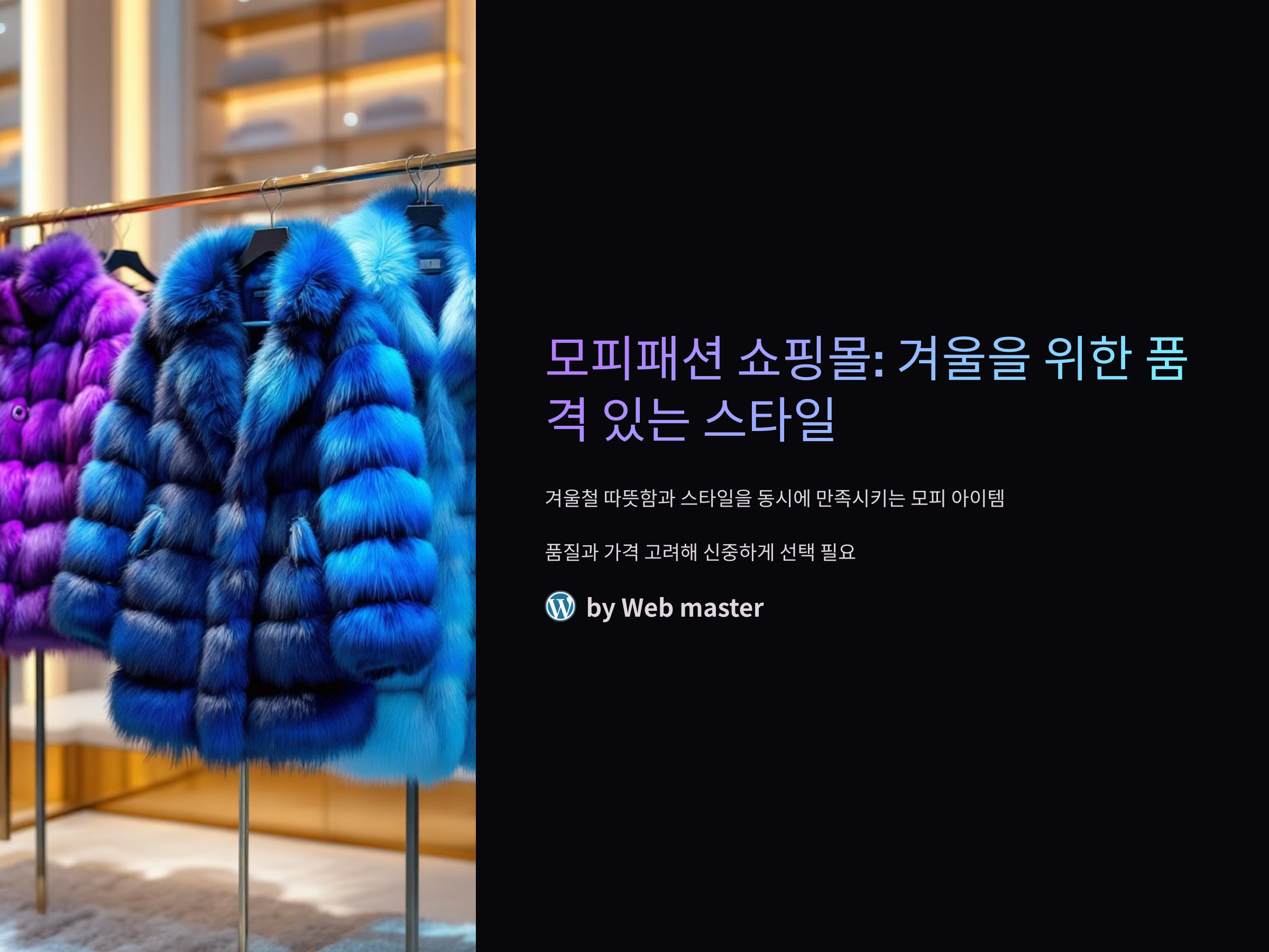 겨울이 다가오면, 따뜻함과 스타일을 동시에 만족시킬 수 있는 패션 아이템들이 필요합니다. 그중에서도 모피는 격식을 갖춘 고급스러운 아이템으로 많은 이들에게 사랑받고 있습니다. 하지만 모피 제품을 구매하려면 품질과 가격을 잘 따져봐야 하므로, 선택할 때 신중함이 필요합니다. 이번 포스팅에서는 모피패션 쇼핑몰을 통해 겨울철 스타일을 업그레이드하는 방법과, 인기 있는 모피 아이템과 쇼핑몰을 어떻게 고를지에 대한 팁을 공유하겠습니다.