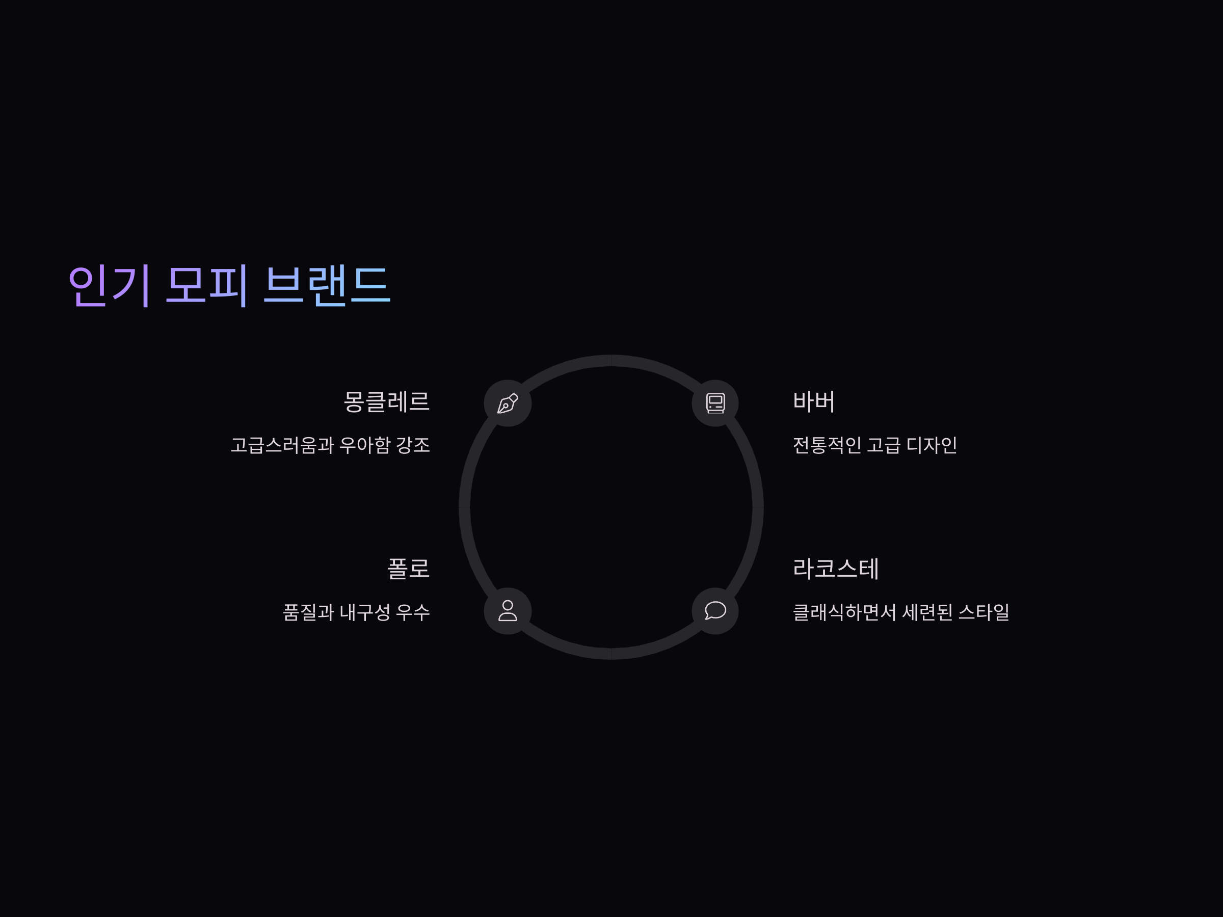 모피패션 쇼핑몰에서 자주 볼 수 있는 브랜드에는 여러 가지가 있습니다. 예를 들어, 몽클레르나 바버와 같은 고급 브랜드에서는 모피 제품을 고급스러움과 우아함을 강조하는 디자인으로 선보이고 있습니다. 또한, 라코스테와 폴로 같은 브랜드에서도 모피 아이템을 제작하고 있으며, 클래식하면서도 세련된 디자인을 찾을 수 있습니다.