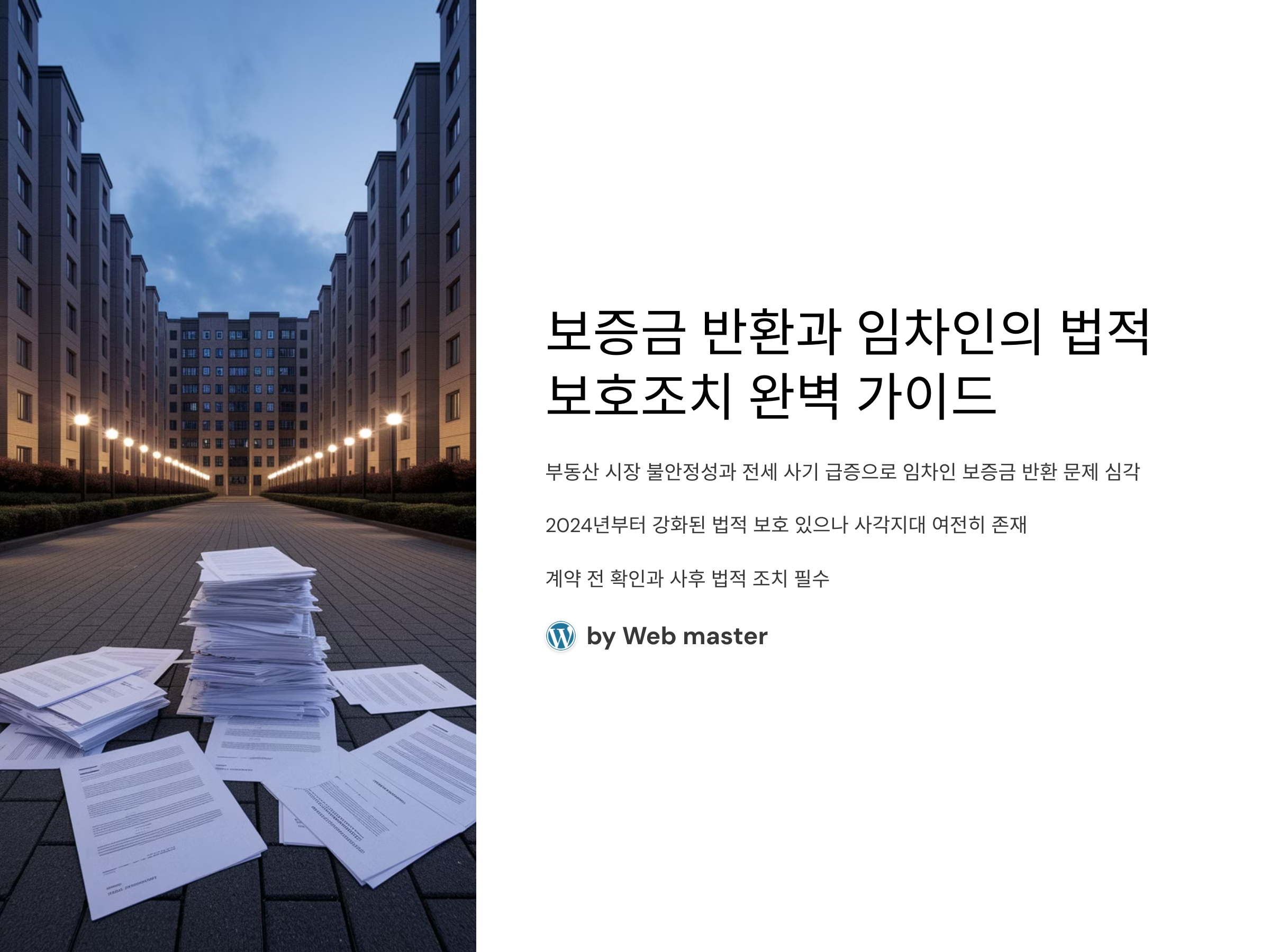 최근 부동산 시장의 불안정성과 전세 사기 급증으로 인해 임차인의 보증금 반환 문제가 사회적 이슈로 떠오르고 있습니다. 특히 2024년부터 강화된 전세 사기 특별법, 임대차 보호법 개정안 등으로 임차인의 권리 보호가 한층 강화되었지만, 여전히 사각지대가 존재합니다. 전문가들은 계약 전 꼼꼼한 확인과 사후 법적 조치가 필수라고 강조합니다. 앞으로 부동산 시장이 더 악화될 가능성이 있는 만큼, 보증금 반환을 위해 사전 예방과 법적 대응 방법을 숙지하는 것이 중요합니다. 이 글에서는 임차인이 꼭 알아야 할 보증금 반환 절차부터 법적 보호조치까지, 실질적이고 적용 가능한 최신 정보들을 정리했습니다. 계약을 앞둔 분이나 계약 만료를 앞둔 임차인이라면 반드시 끝까지 확인하시길 바랍니다.
