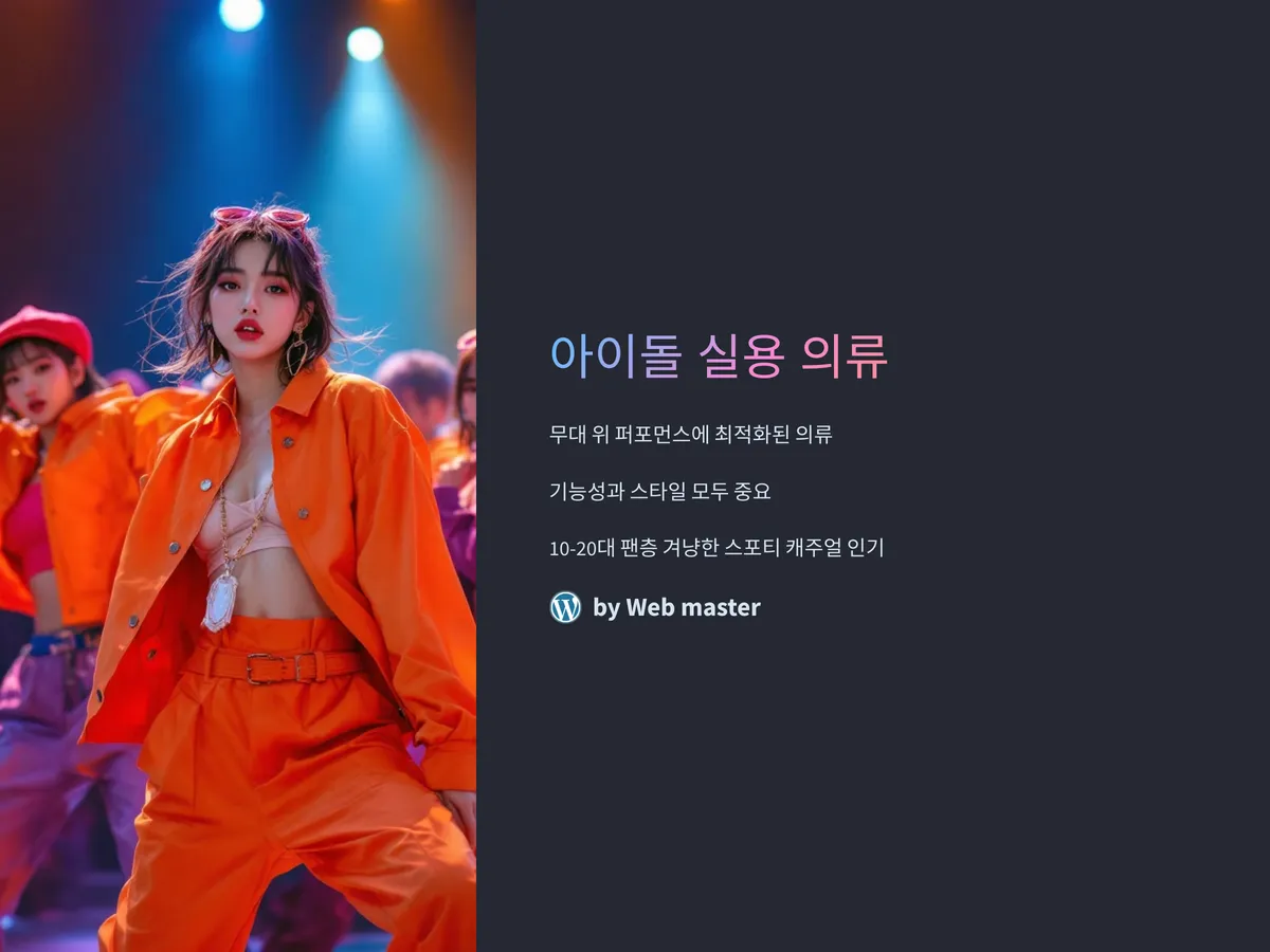 K-POP과 댄스 문화의 세계적 확산으로 인해, 무대 위 퍼포먼스에 최적화된 ‘아이돌 실용 의류’에 대한 수요가 꾸준히 증가하고 있습니다. 단순한 패션을 넘어, 땀을 흘려도 쾌적함을 유지하고 다양한 안무 동작을 소화할 수 있는 편안한 착용감, 그리고 무대에서 돋보일 수 있는 스타일이 필수 조건입니다. 최근에는 이러한 요소들을 모두 만족시키는 브랜드와 아이템들이 주목받고 있으며, 특히 10대~20대 팬층을 겨냥한 스포티 캐주얼 라인의 인기도 높습니다.