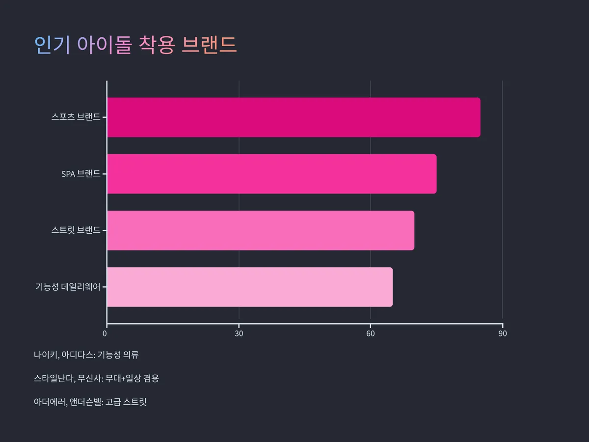 이 외에도 ZARA, H&M, SPAO와 같은 SPA 브랜드도 방송용 의상 스타일링에서 빈번하게 활용되고 있으며, 각 브랜드마다 시즌별로 출시되는 컬렉션을 주목하면 아이돌 스타일을 선도하는 감각적인 룩을 따라잡을 수 있습니