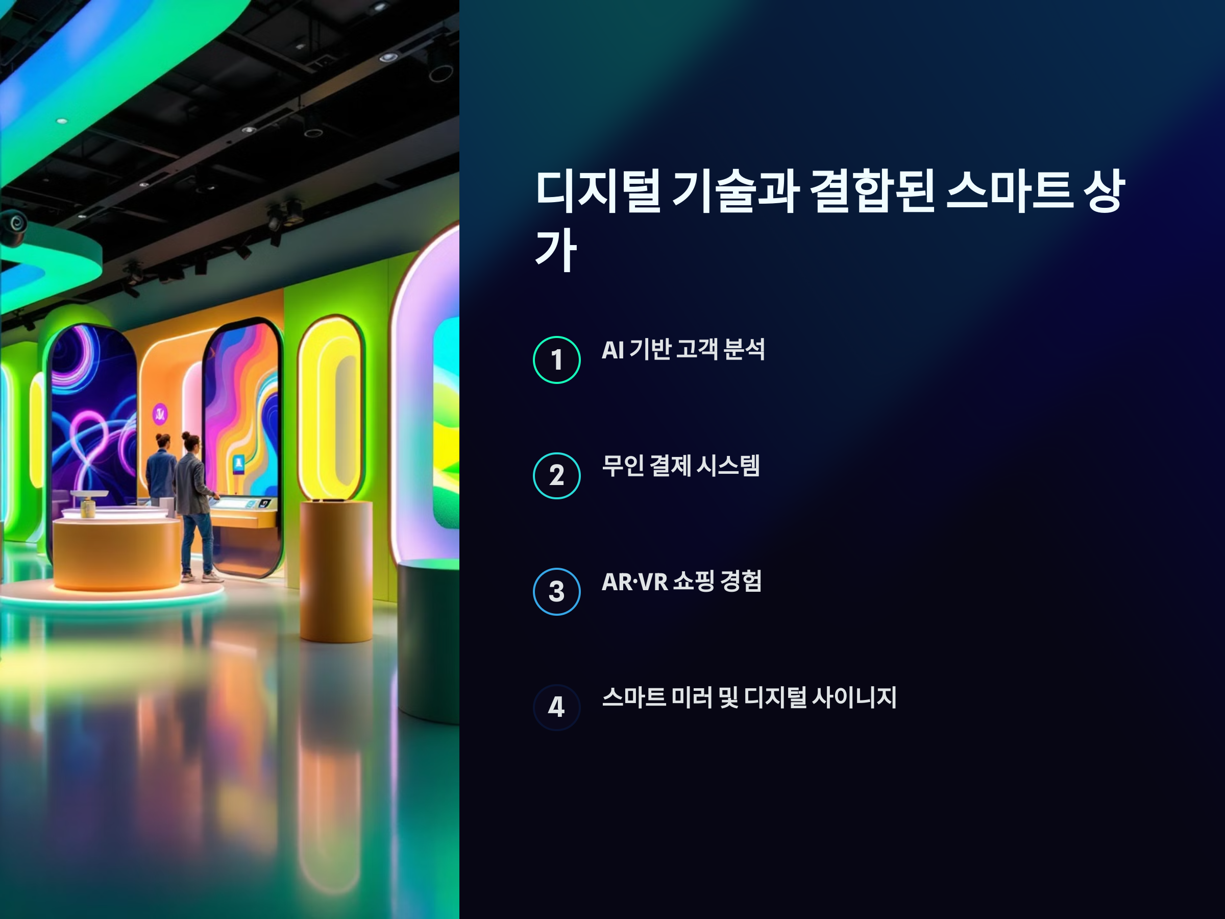 AI와 무인 결제 시스템을 적용한 일본의 'Amazon Go' 스토어, 중국의 '알리바바 허마셴성' 등은 스마트 상가의 대표적인 성공 사례입니다. 이러한 기술 적용이 상가의 차별화 요소가 될 수 있습니다.
