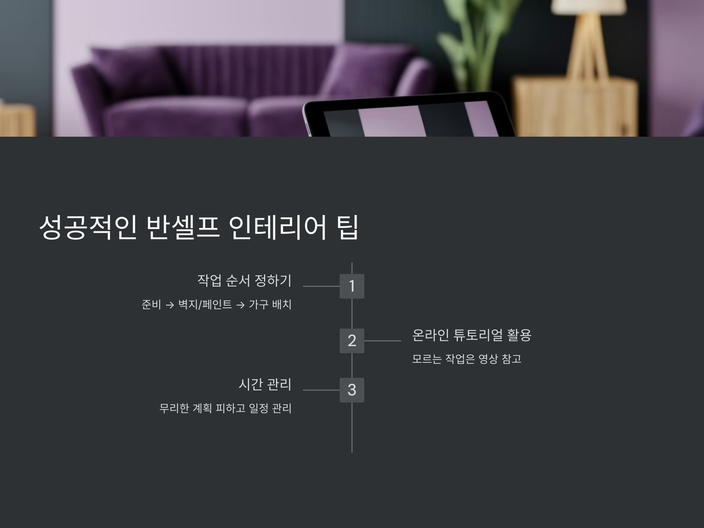 반셀프 인테리어를 성공적으로 진행하기 위해서는 충분한 준비와 계획이 중요합니다.