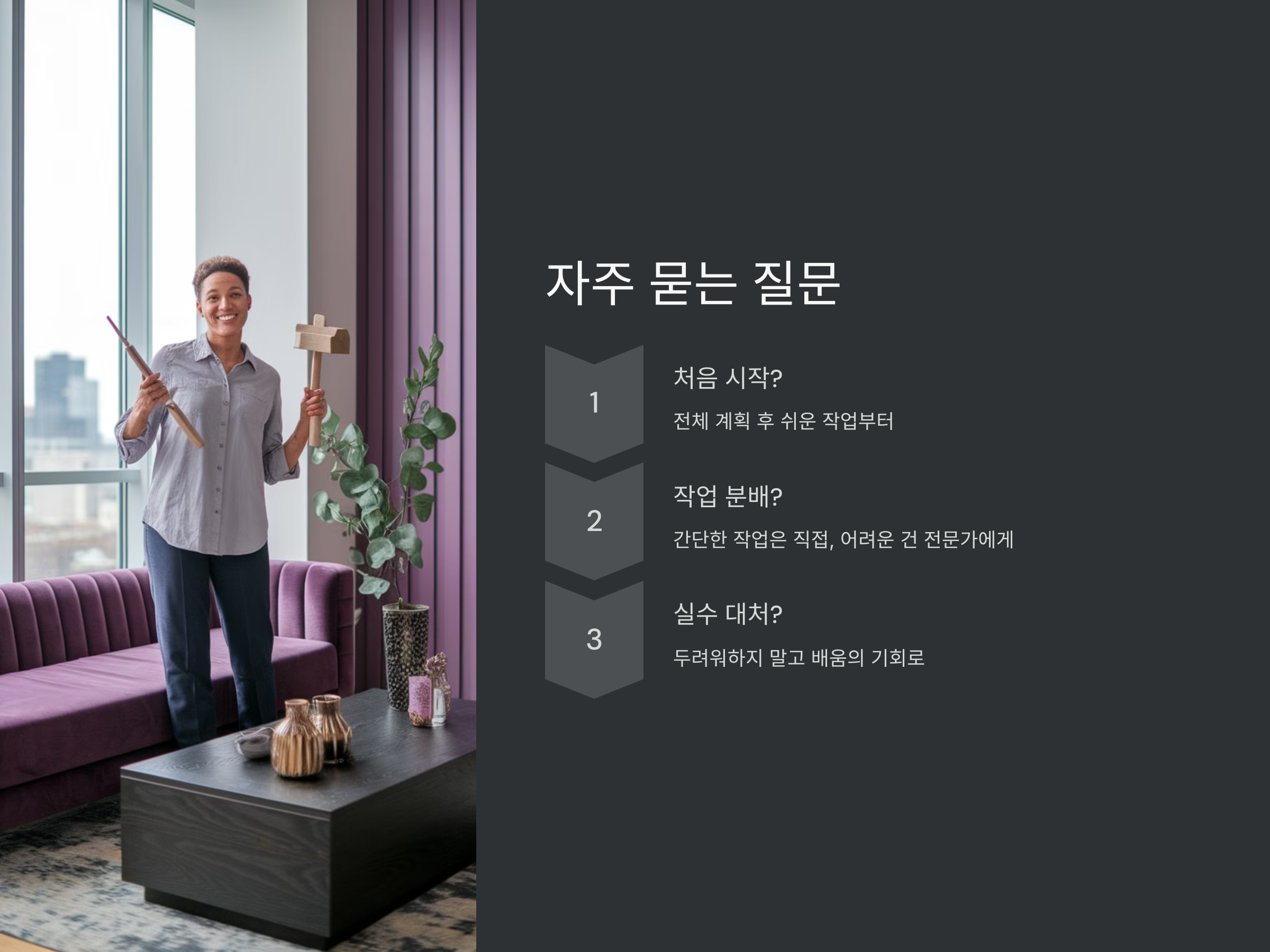 Q1: 반셀프 인테리어를 처음 시작하는데, 무엇부터 해야 하나요?