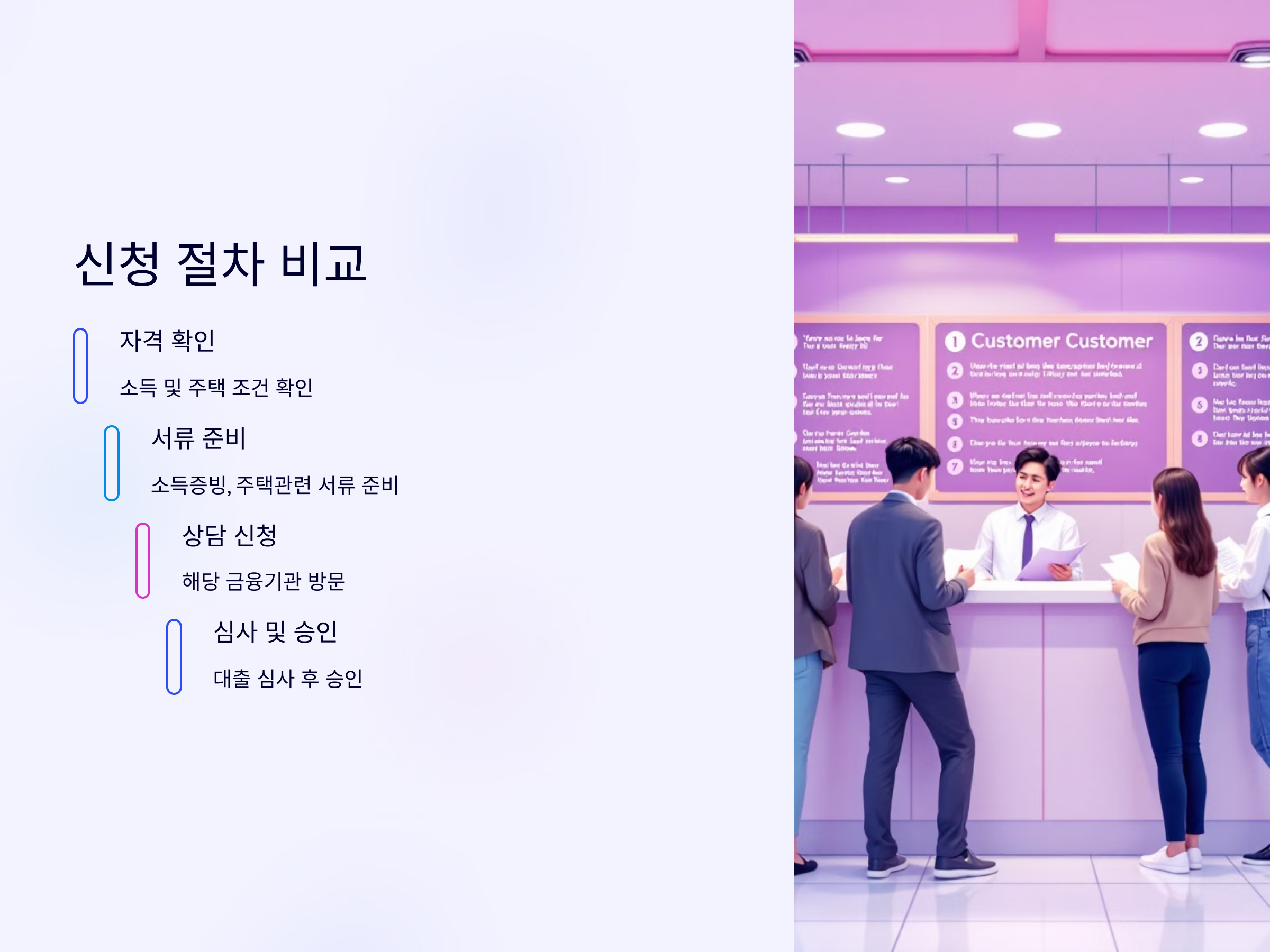 - 대출 대상: 소득 및 주택 가격 등의 조건을 충족해야 함