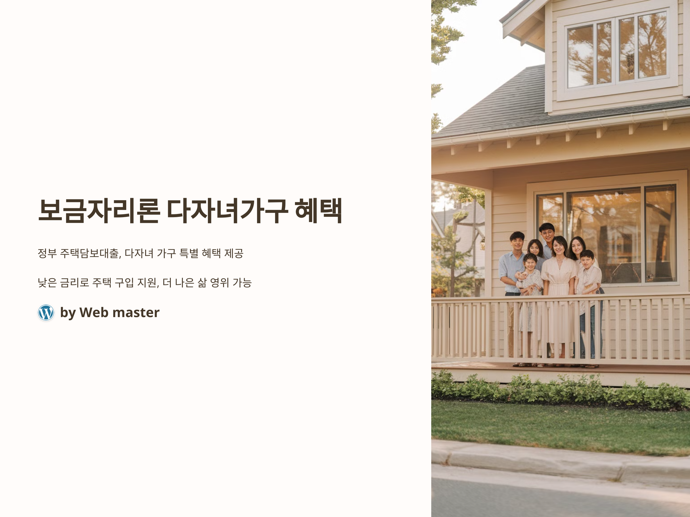 보금자리론은 다자녀가구에게 실질적인 혜택을 제공하는 중요한 금융 상품입니다. 금리 할인, 대출 한도 증대, 상환 기간 연장 등 다양한 혜택을 통해 다자녀 가구가 주택을 마련하는데 경제적인 부담을 덜어주는 역할을 합니다. 이를 통해 많은 가구들이 주택을 구입하고, 안정적인 생활을 할 수 있게 되기를 바랍니다. 다자녀가구라면 꼭 확인해볼 만한 혜택이므로, 자신이 받을 수 있는 혜택을 충분히 알아보고, 필요한 서류와 절차를 진행하는 것이 중요합니다.