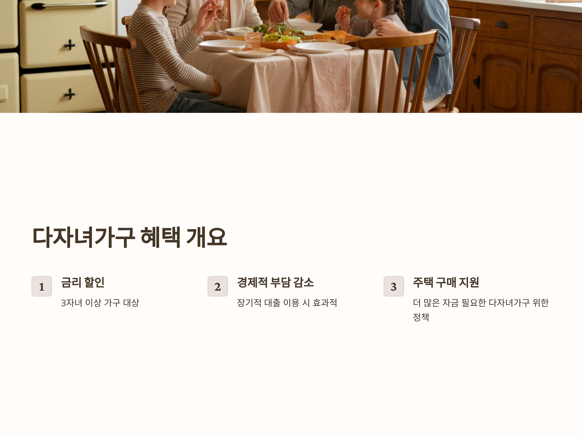 - 자녀 수가 많을수록 금리가 0.1~0.3% 가량 낮아짐.