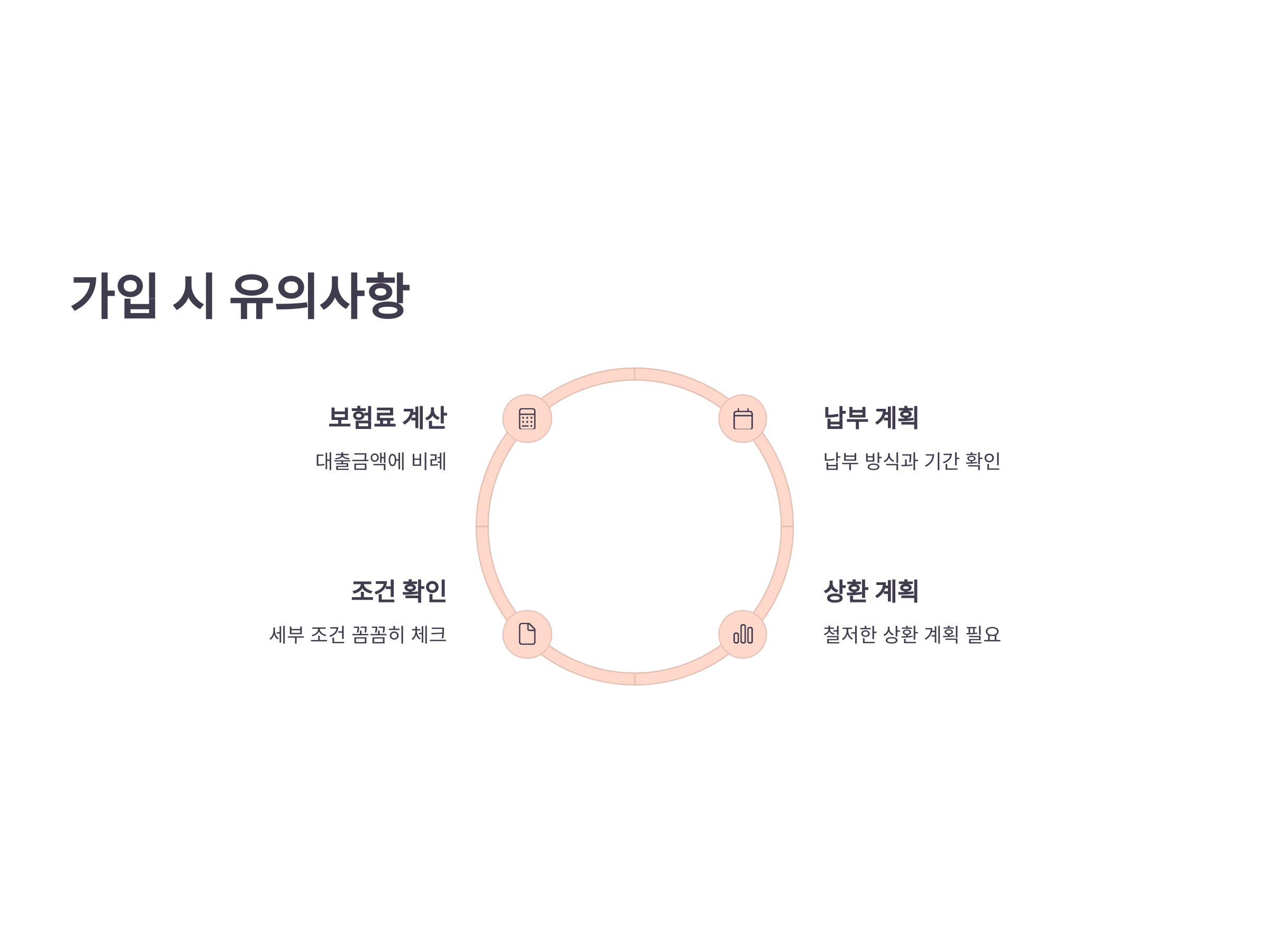 보금자리론 보증보험 가입 시 유의할 점은 몇 가지가 있습니다. 첫째, 보증보험료가 대출금액에 비례하여 결정되기 때문에, 대출자의 상환 능력에 맞는 보험료를 예상하고 준비해야 합니다. 둘째, 보증보험 가입이 의무적이라면, 보험료 납부 방식이나 납부 기간 등을 미리 확인하여 장기적인 부담을 최소화할 수 있도록 계획을 세우는 것이 좋습니다.