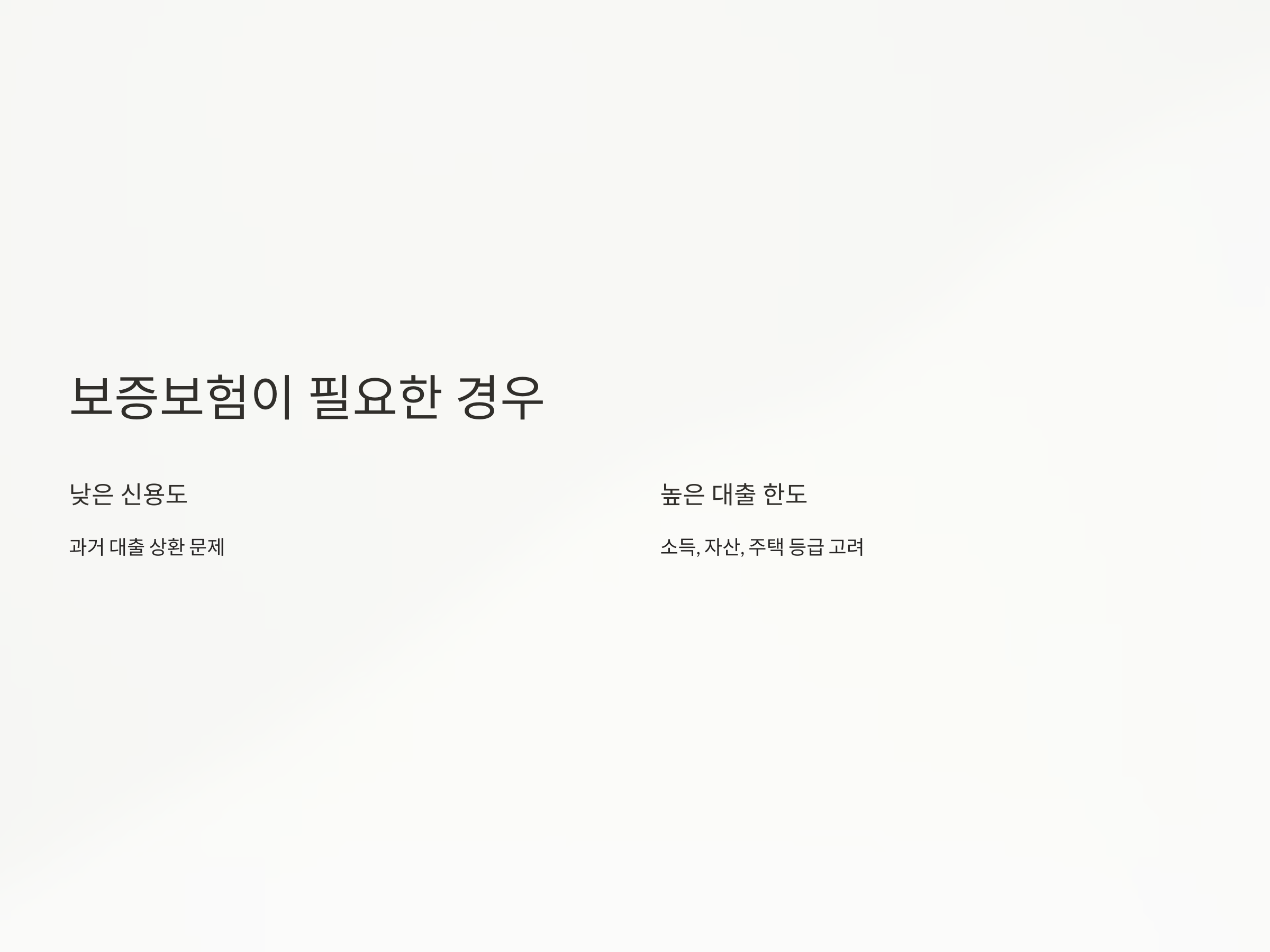 대출자가 신용도가 낮거나, 상환능력에 불안정한 요소가 있을 경우 보증보험을 가입해야 할 수 있습니다. 이를 통해 대출 기관은 상환에 대한 리스크를 줄일 수 있고, 대출자에게도 안정적인 조건으로 대출을 제공할 수 있게 됩니다.
