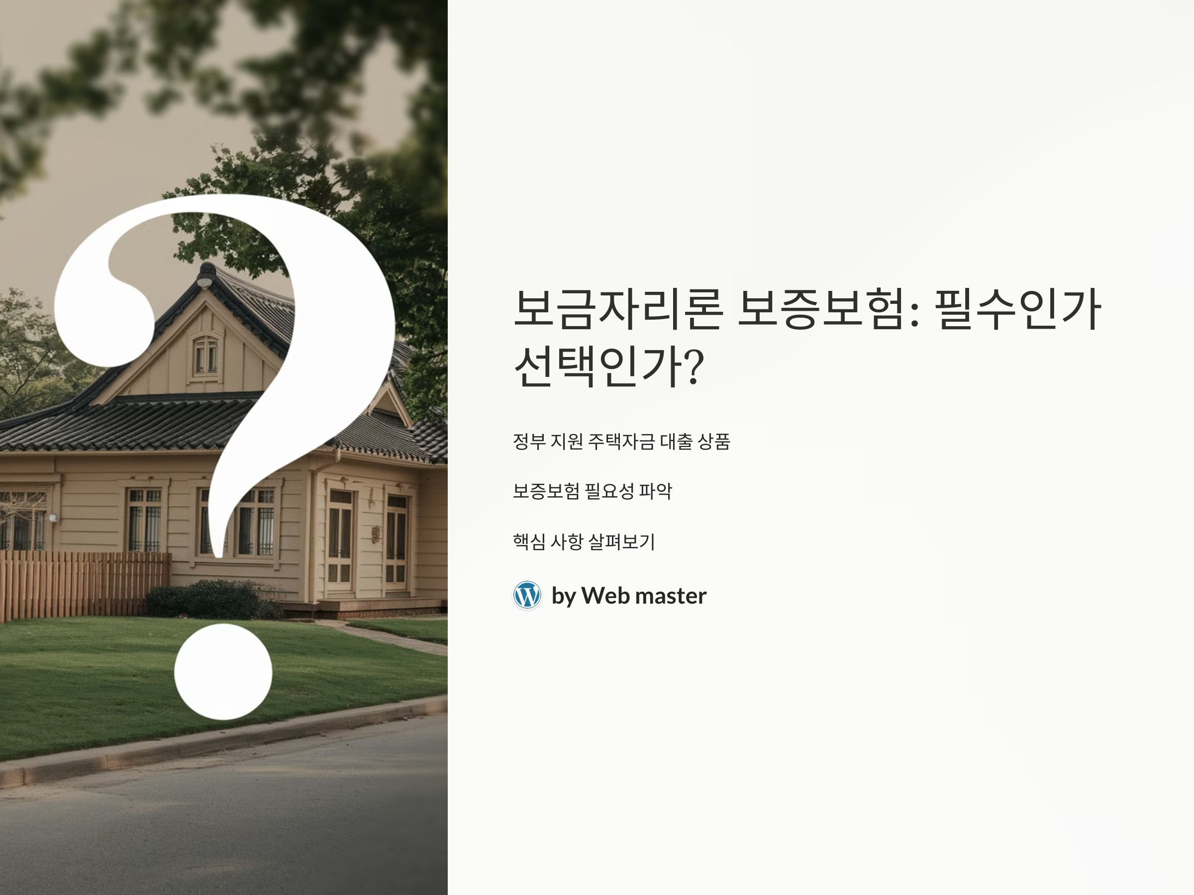 보금자리론은 정부에서 제공하는 대표적인 주택자금 대출 상품으로, 낮은 금리와 유리한 조건으로 많은 이들이 이용하고 있습니다. 그러나 보금자리론을 이용할 때 보증보험 가입이 필수인지 여부에 대해 궁금해하는 분들이 많습니다. 보증보험이 필요한 경우와 그렇지 않은 경우, 그 차이점과 가입 여부를 결정하는 핵심 사항들을 자세히 살펴보겠습니다.