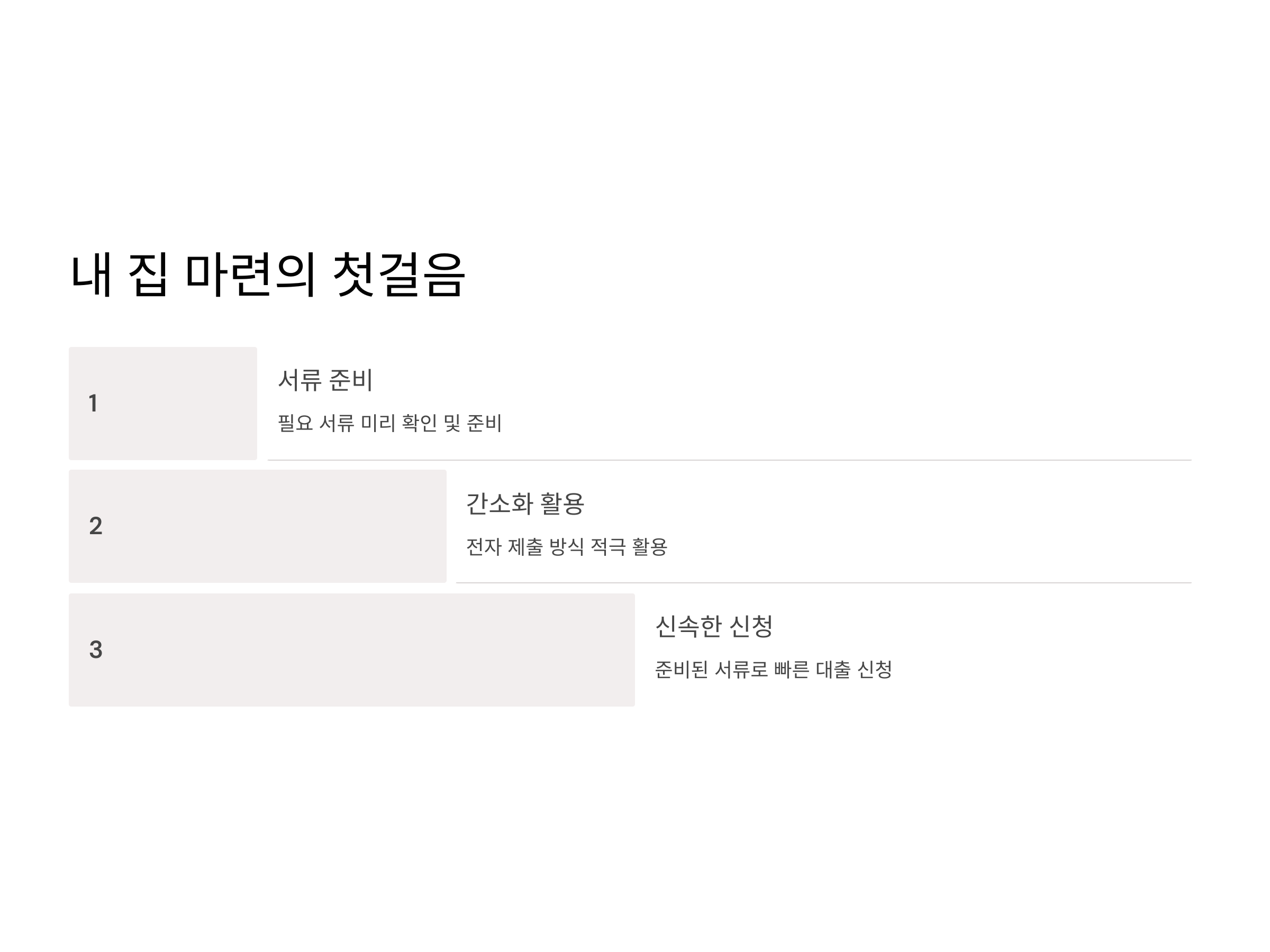 서류 간소화가 이루어졌다고 해도 실제 대출 신청 절차에서 중요한 점은 여전히 서류의 정확성과 빠른 제출입니다. 보금자리론 대출 절차는 크게 다음과 같습니다.