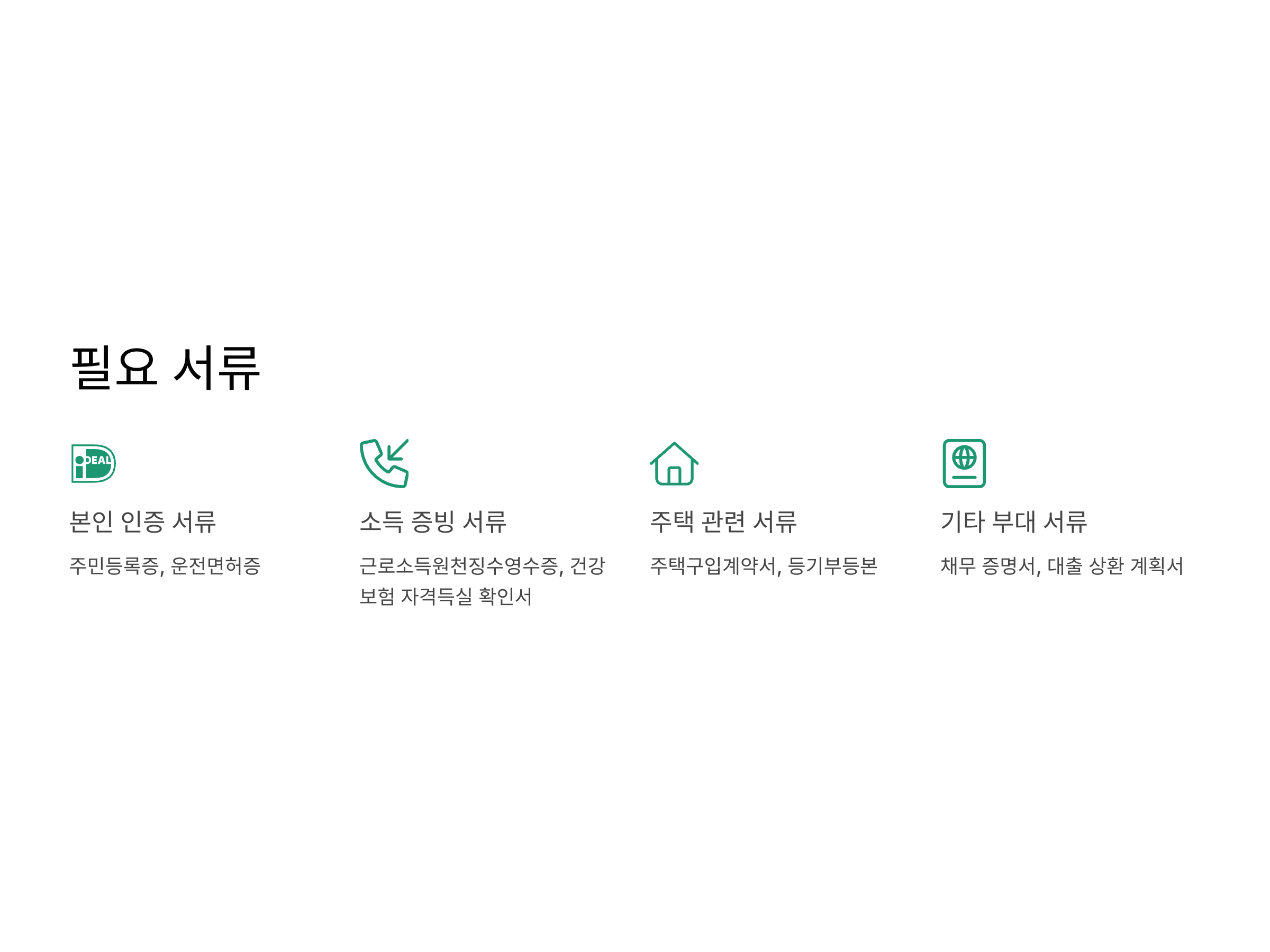- 주택 관련 서류: 주택구입계약서, 등기부등본 등이 필요한 서류입니다. 이 서류들은 대출을 받으려는 주택과 관련된 내용을 증명하는 중요한 자료입니다.
