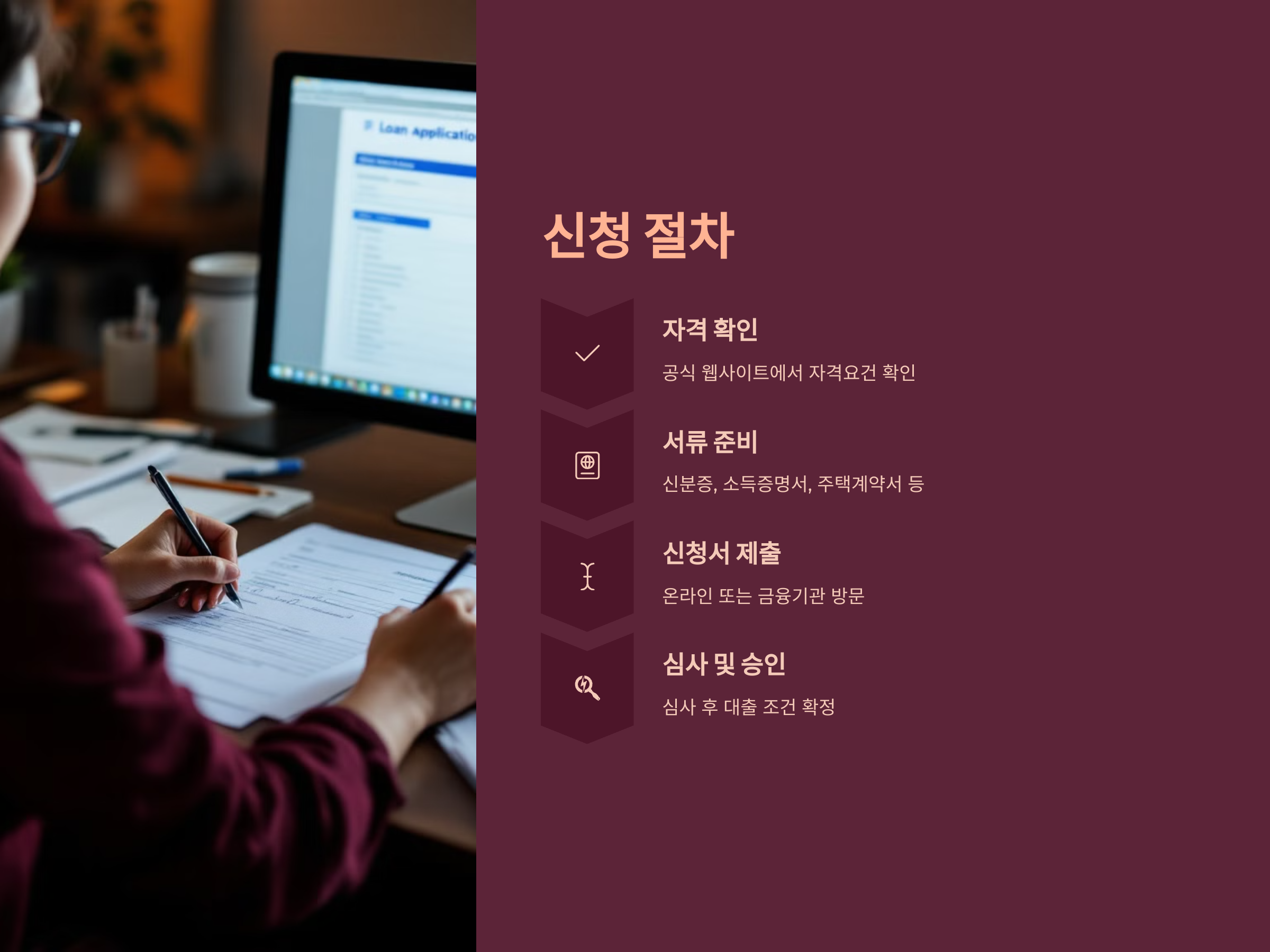 보금자리론 신청 절차는 몇 가지 단계를 거칩니다. 이 절차를 잘 이해하고 준비하면 신청이 훨씬 수월해집니다.