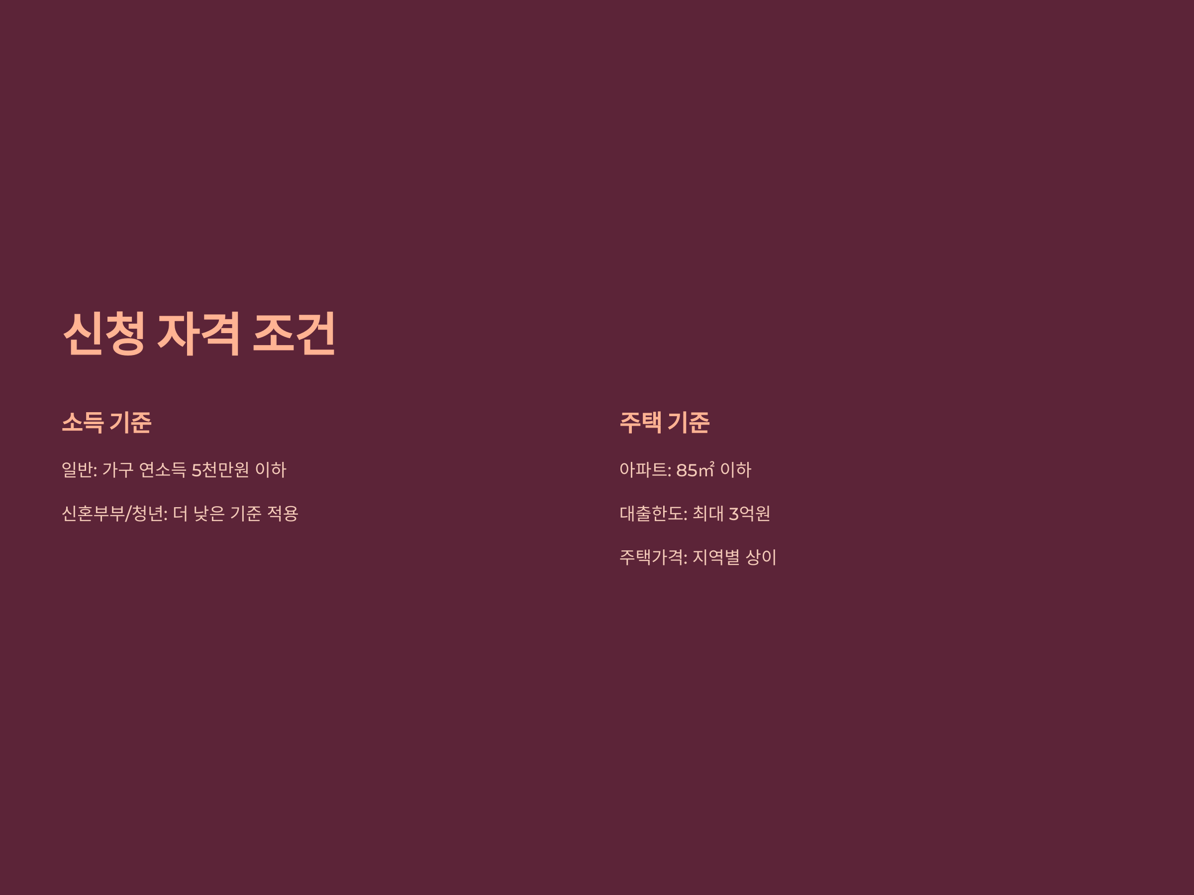 보금자리론을 신청하려면 기본적인 자격 조건을 충족해야 합니다. 자격 요건을 충족하지 못하면 대출을 받을 수 없으므로, 신청 전에 확인해야 합니다.